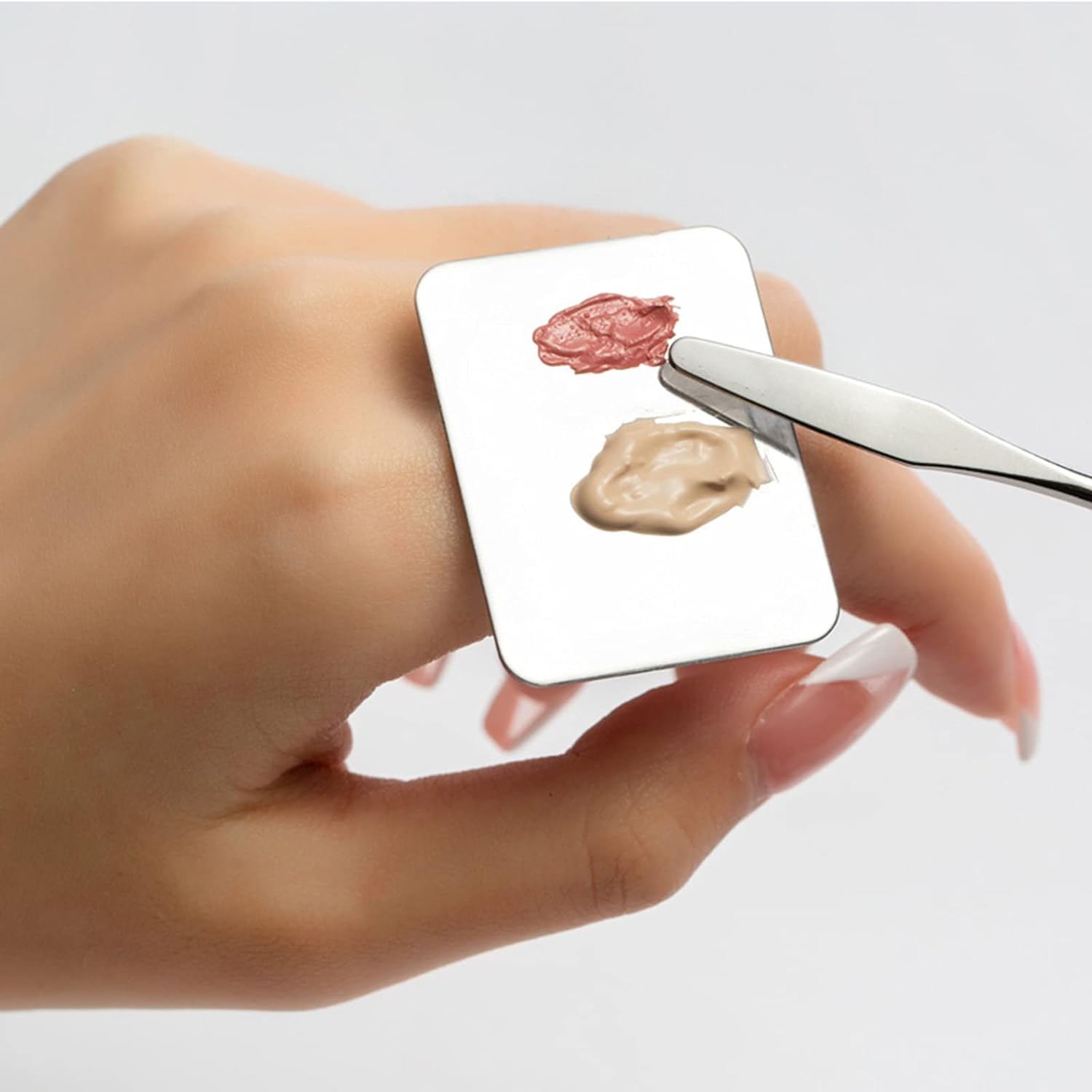 Himpokejg Stainless Steel Cosmetic Makeup Palette for Nail Art Eye Shadow Eyelash, Multifunctional DIY Stainless Steel Paint Palette Tray Mixing Rod Spatula Set for Beauty B