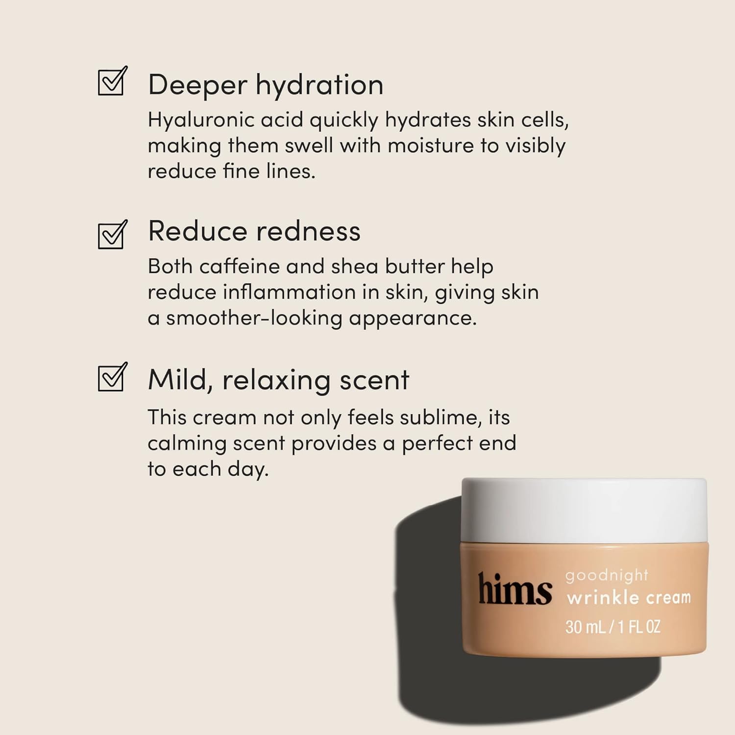 Hims Goodnight Wrinkle Cream For Men - Fine Lines, Puffiness, Dark Eye Circles - Caffeine, Hyaluronic Acid, Night Cream, Almond Scent - Vegan, Cruelty-Free, No Parabens - (1Oz)