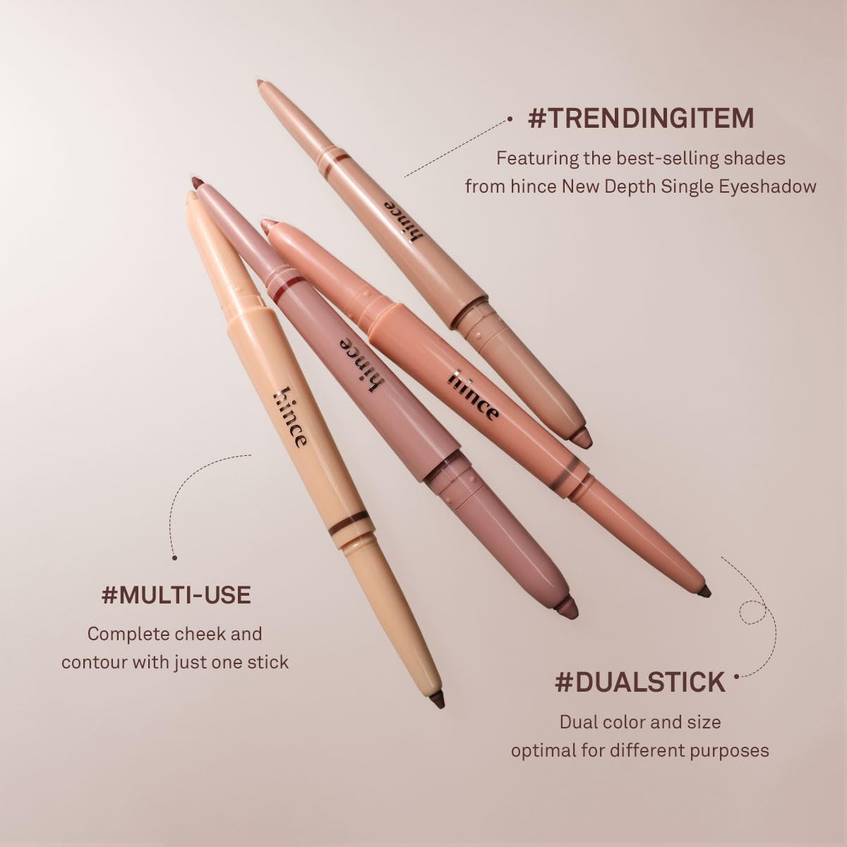 Hince New Depth Dual Color Stick 02 Cool Volume Liner - Dual Highlighter & Contouring Stick, Aegyosal Makeup, Under Eye Highlighter, Quick & Easy Stick Eye Makeup