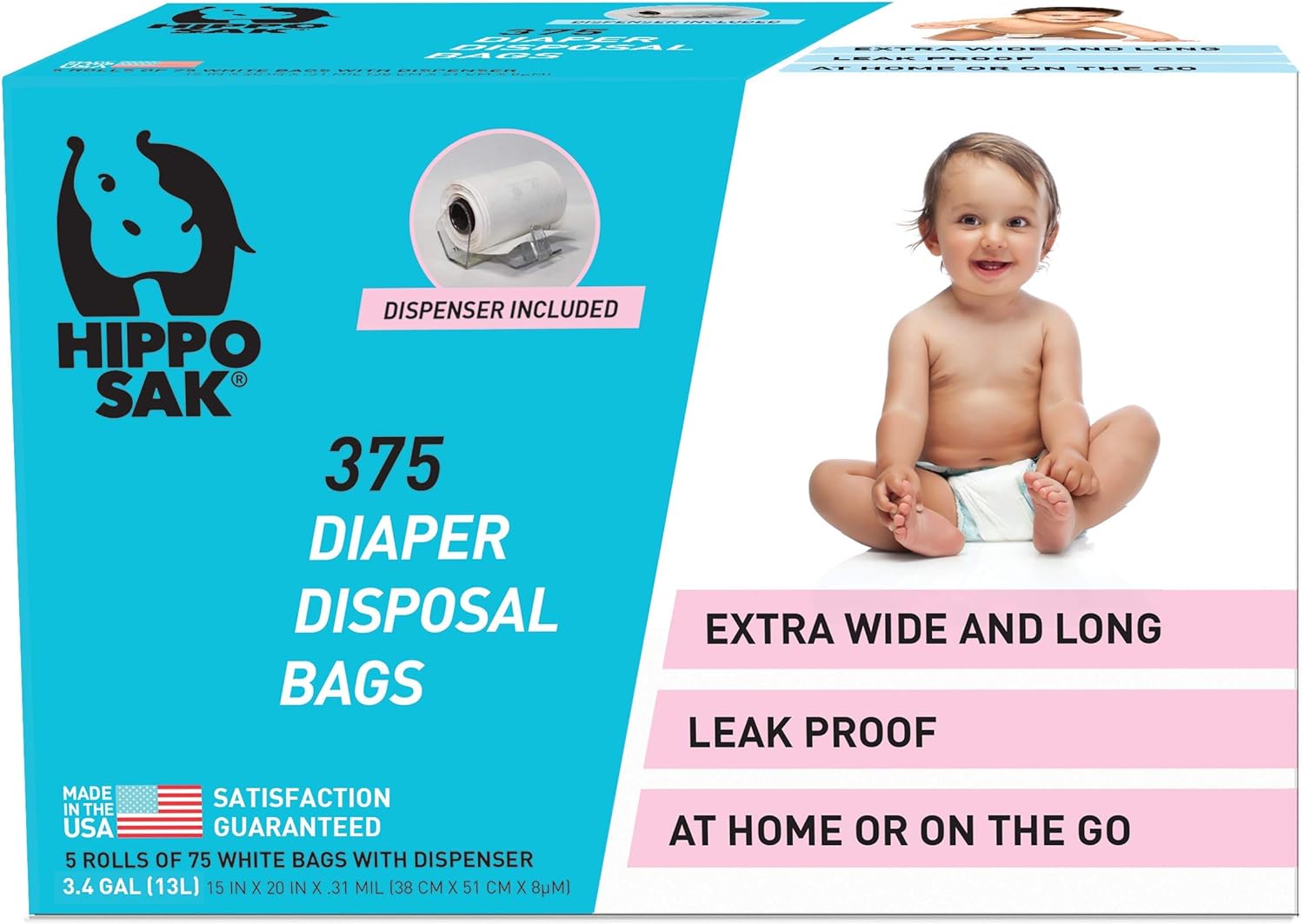 Hippo Sak Diaper Disposal System Is Perfect For Use In The Home Or On The Go. It Includes A Compact And Easy To Use Dispenser And Comes With Extra Long And Wide Bags To Hold In Even The Messiest Diapers. When Tied Shut, They Hold In Order Thanks To The 8 Layer "Star Sealed" Bottom Seal. They Are Also Made In The Usa