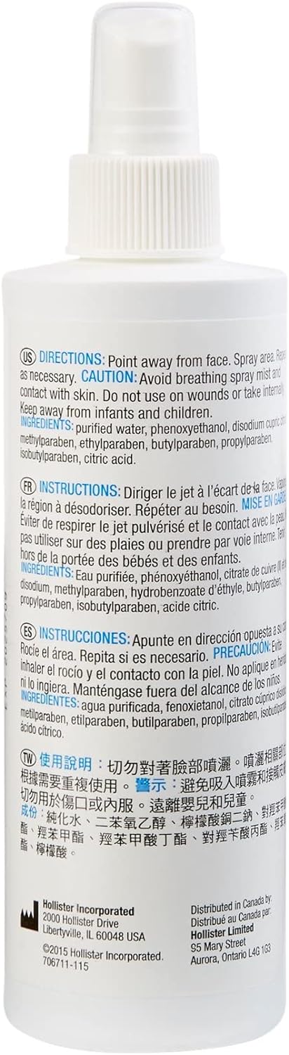 OSTOMY ODOR NEUTRALIZER: This odor eliminator spray is designed as a room spray to help neutralize unpleasant odors rather than covering them10CONVENIENT TRAVEL OR HOME USE: This odor spray comes in two sizes so you can conveniently travel with it on hand or keep a bottle at home for quick use10UNSCENTED ODOR ELIMINATOR: This odor eliminator is suitable for those who prefer odorless products10HOLLISTER OSTOMY SUPPLIES: Serving healthcare professionals and patients for 100 years, Hollister makes a difference in the journey of life thanks to worldwide advanced medical products and services for ostomy care10