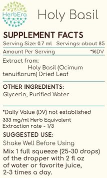 Holy Basil B120 Alcohol-Free Herbal Extract Tincture, Concentrated Liquid Drops Natural Holy Basil (Ocimum Tenuiflorum) Dried Herb (4 Fl Oz)