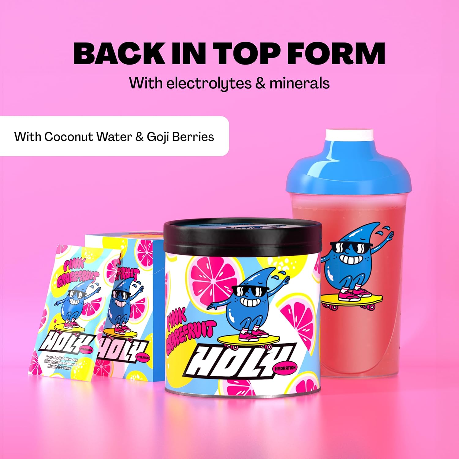 Holy Hydration 10 Tasting Box 'Pink Grapefruit' With Grapefruit Flavour Powder | 10 Servings With Valuable Electrolytes & Minerals | Hydration Drink | Vegan With 100% Natural Fruit Flavours