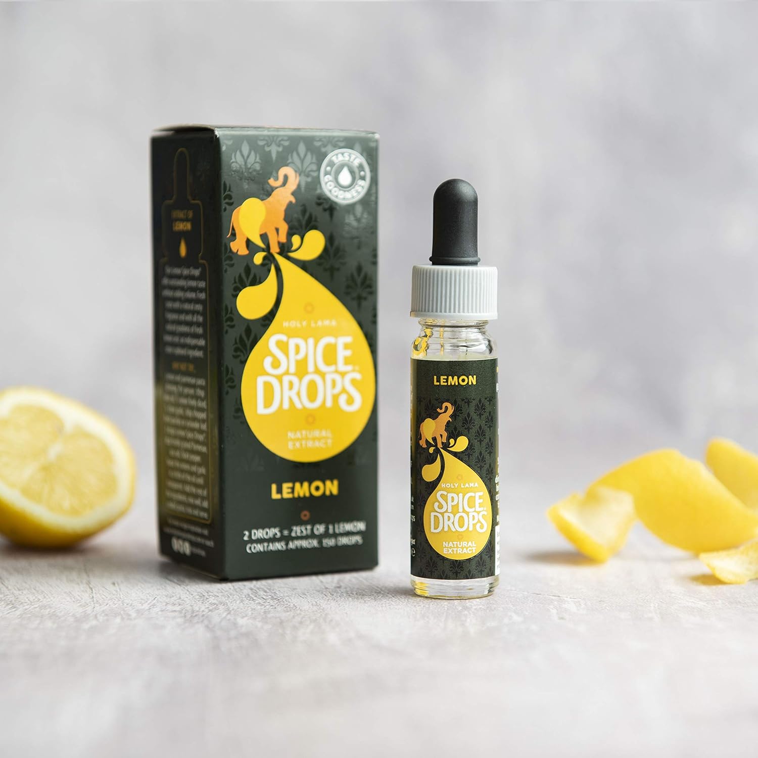 Holy Lama Spice Drops - Natural Lemon Zest Extract As Seen On Great British Bake Off, Baking, Cooking Recipes, Cocktails, Desserts, Drinks Twin Pack (2 X 5Ml Bottles)