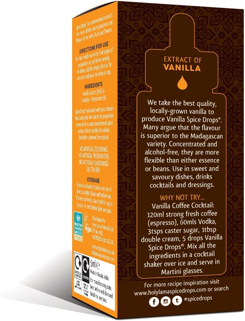 Holy Lama Spice Drops Vanilla Extract β Great Taste Awards. Natural Cooking Ingredient, Sweet And Savoury Recipes, Baking, Drinks, Teas, Cocktails 2 X 5Ml Bottles