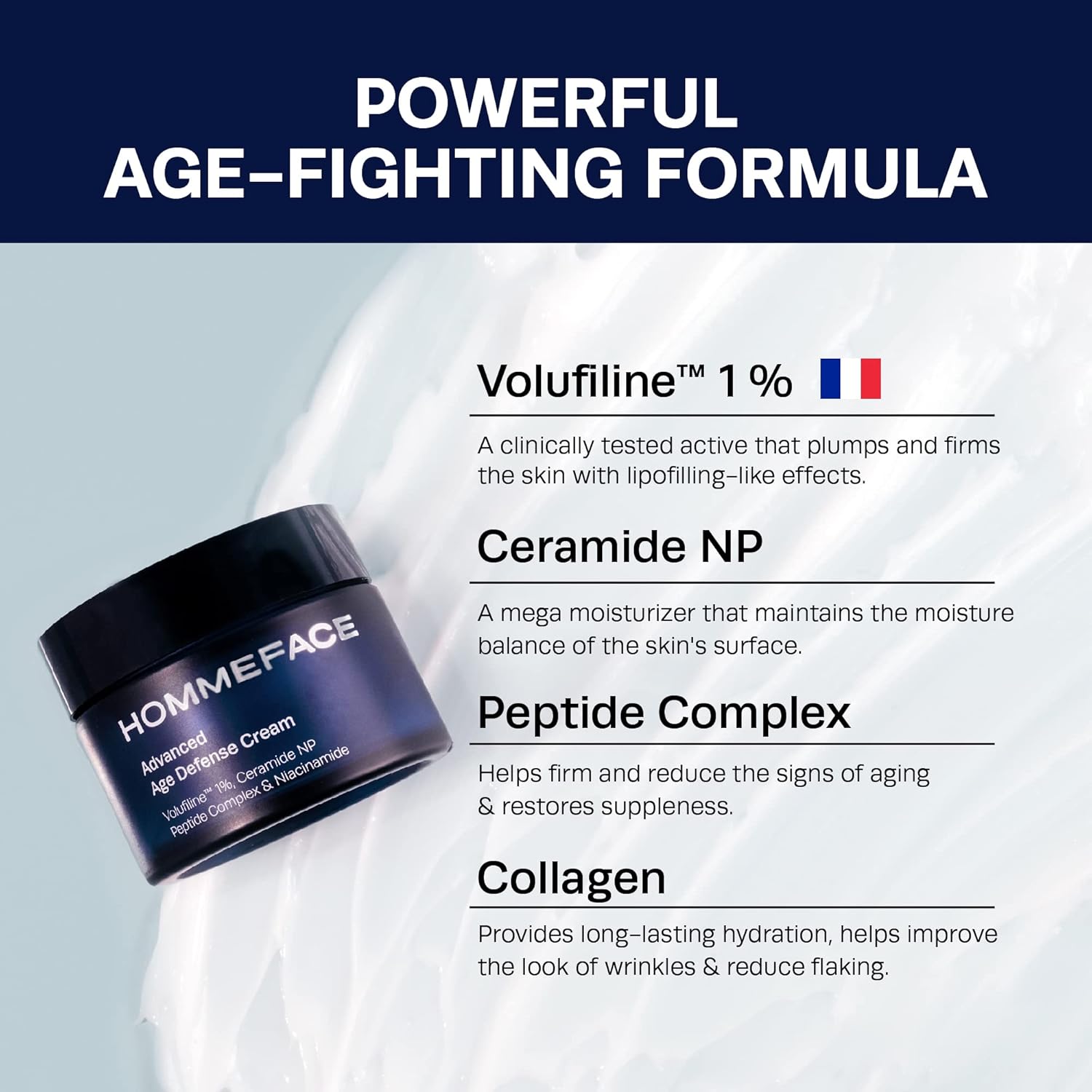 Hommeface Advanced Age Defense Anti-Wrinkle Day & Night Face Cream For Men, 1.76 Oz