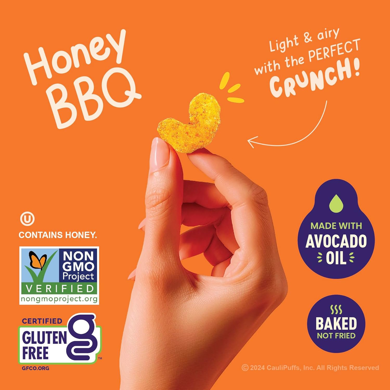 Honey Bbq Caulipuffs - Corn, Rice, And Cauliflower Gluten Free Puffed Snack (Box Of 15, 0.75Oz Bags)