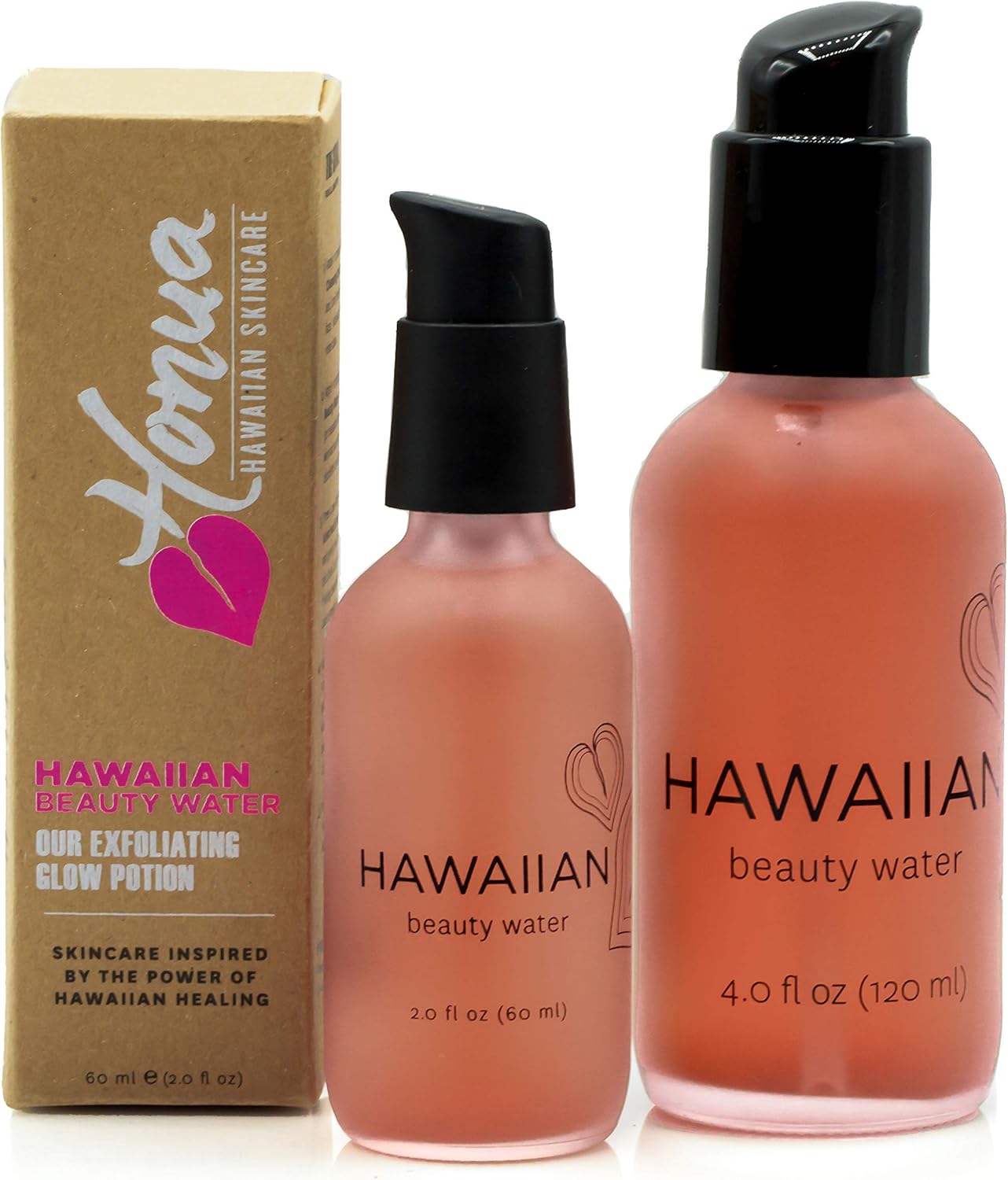 About this item Exfoliation is important.....but you don't need to scrub your face off for it to be effective. Enter Hawaiian Beauty Water, our go-to glow potion for revealing healthy, glowing skin. Papaya enzymes, willow bark, hibiscus and k (Hawaiian sugar) work together to gently exfoliate skin, letting your underlying glow....show! Great as a skin prep before makeup applications! Please store in a cool and dark to preserve its logevity! While we Hawaiians LOVE the Sun, our Honua creations do not. See more product details,Exfoliation is important.....but you don't need to scrub your face off for it to be effective,Enter Hawaiian Beauty Water, our go-to glow potion for revealing healthy, glowing skin,Papaya enzymes, willow bark, hibiscus and k (Hawaiian sugar) work together to gently exfoliate skin, letting your underlying glow....show!,Great as a skin prep before makeup applications!,Please store in a cool and dark to preserve its logevity! While we Hawaiians LOVE the Sun, our Honua creations do not