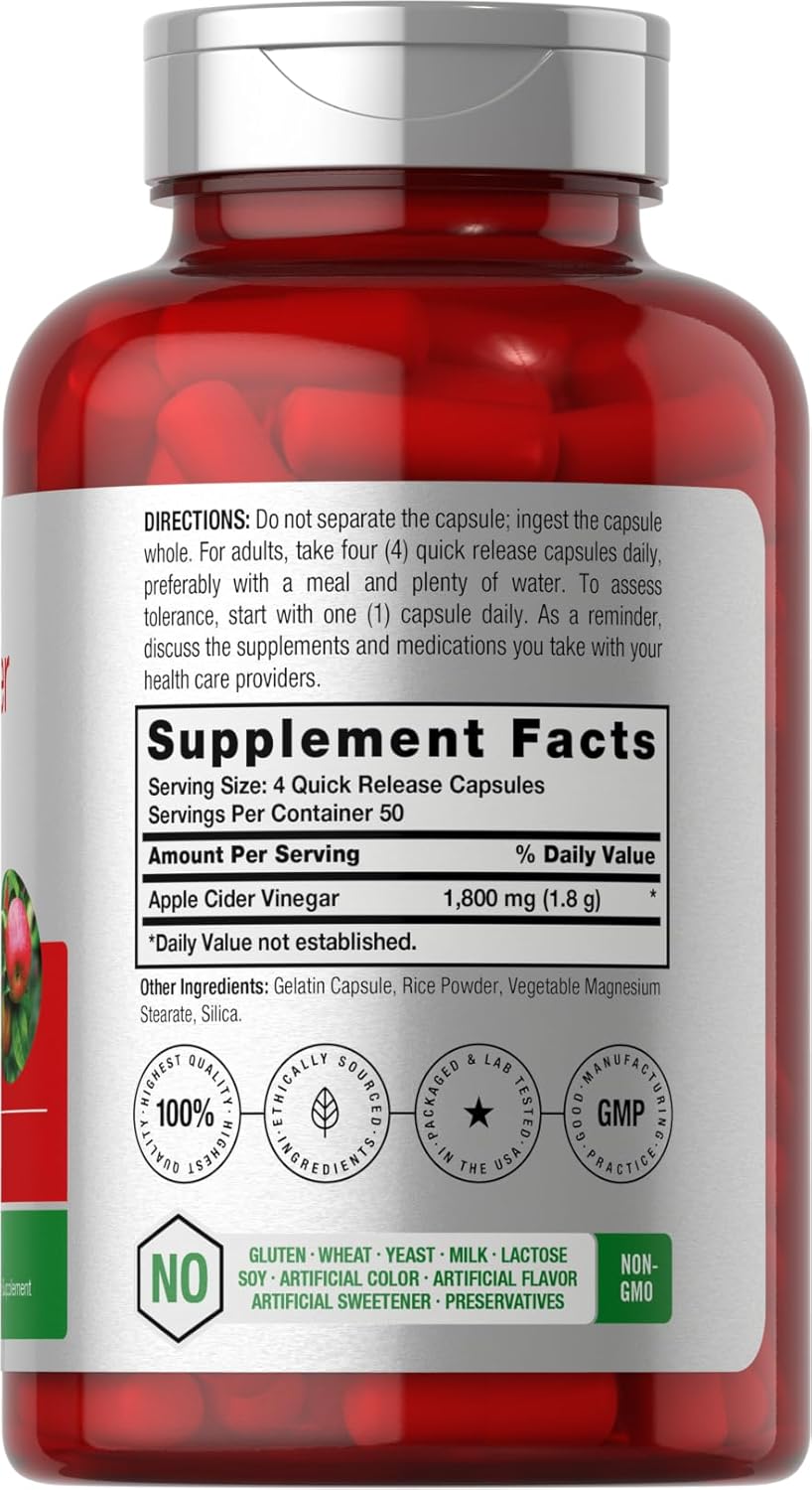 Advanced Formula: 1,800 Mg Of Apple Cider Vinegar Per Serving In Convenient Quick Release Capsules