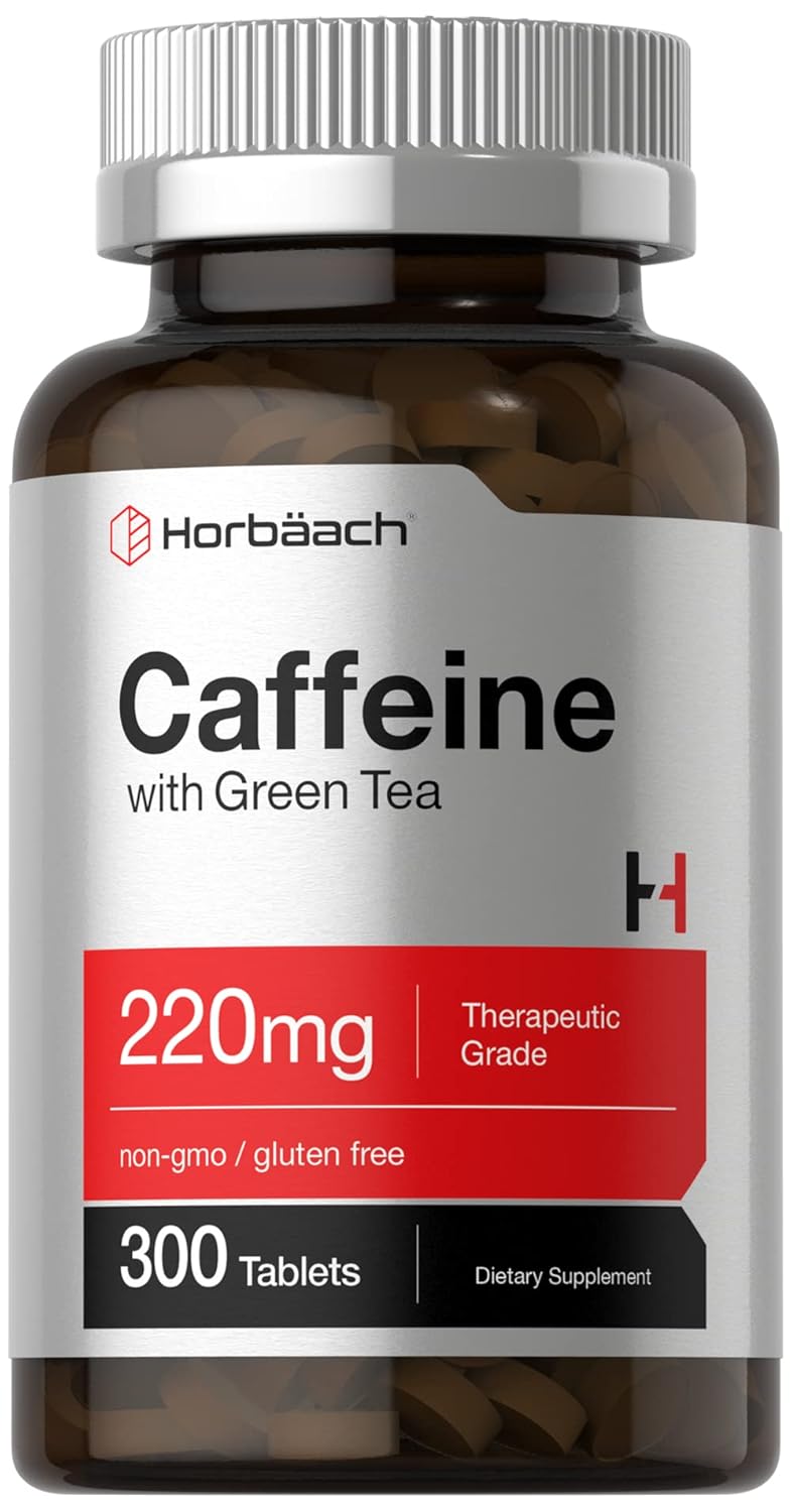 Horbäach Caffeine Pills 200Mg | With Green Tea | 300 Tablets | Vegetarian, Non-Gmo & Gluten Free