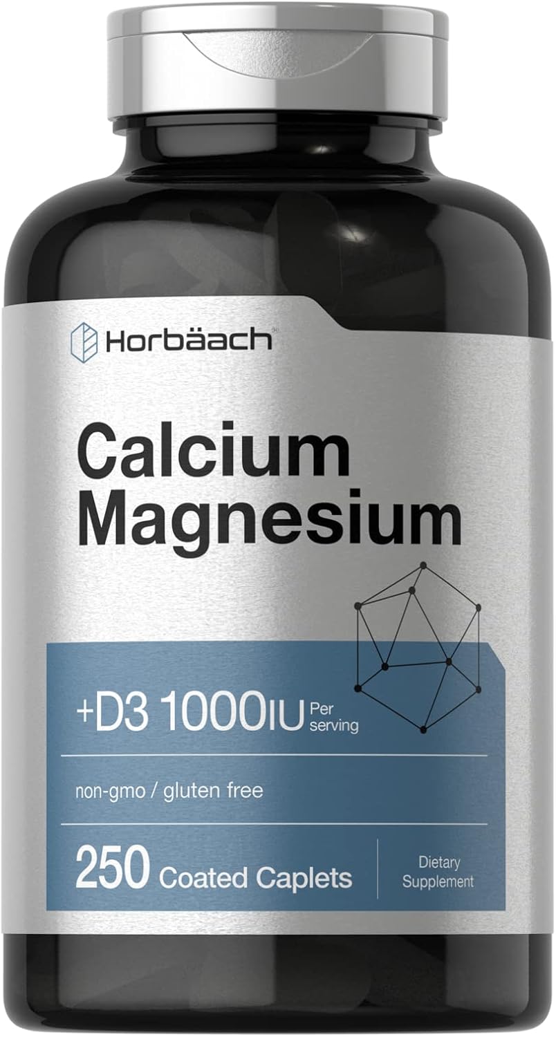 Horbäach Calcium Magnesium & D3 | 250 Coated Caplets | Non-Gmo & Gluten Free Supplement