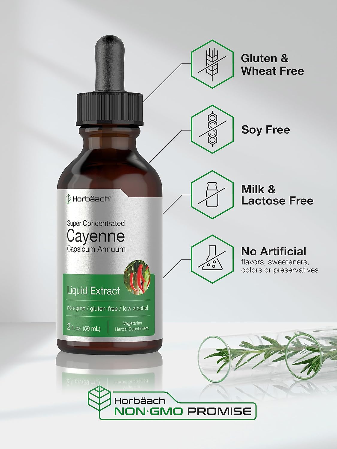 Horbäach Cayenne Pepper Liquid Extract | 2 Fl Oz | Vegetarian, Non-Gmo, Gluten Free Supplement