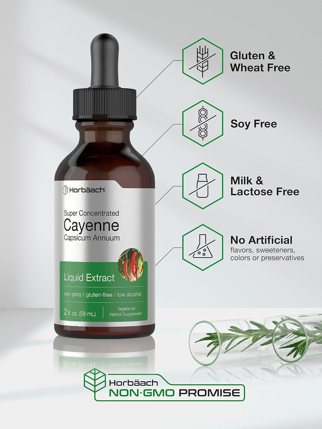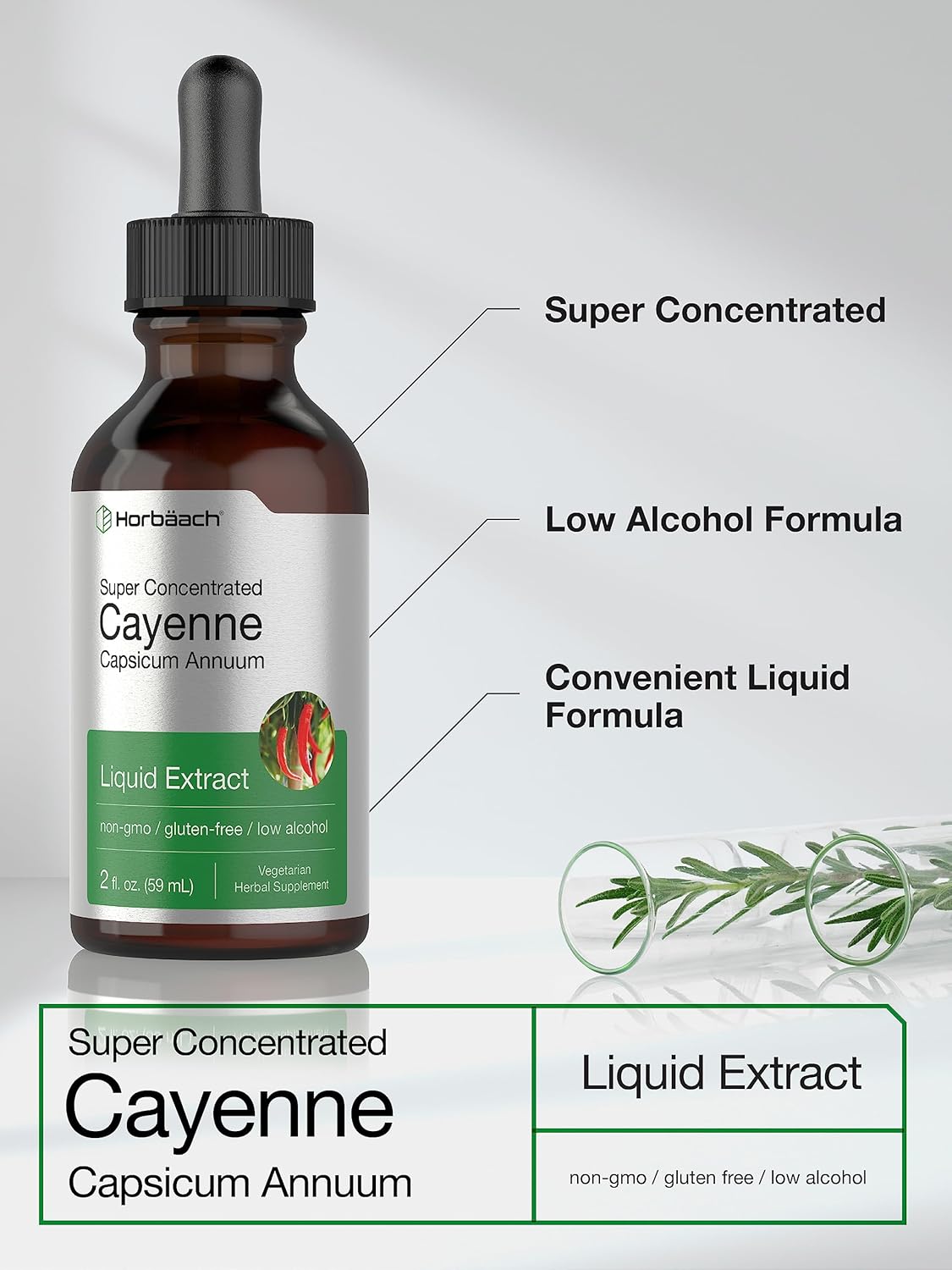 Horbäach Cayenne Pepper Tincture | 2 Fl Oz Liquid Extract | Vegetarian, Non-Gmo, Gluten Free Supplement