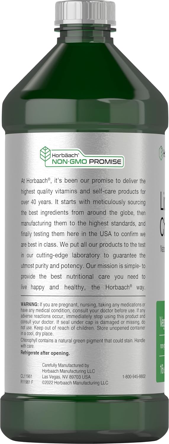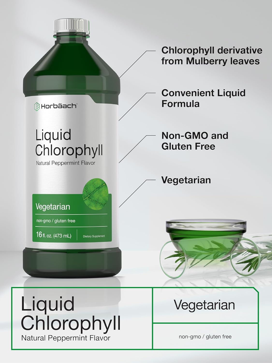 About this item LIQUID CHLOROPHYLL: Active green pigment in plants, with naturally occurring beneficial antioxidants FINE INGREDIENTS: Each Tbsp delivers 100 mg of Chlorophyll derived from Mulberry leaves EXPERTLY CRAFTED: Our professional formula is backed by our commitment to purity and potency HORBAACH MANUFACTURERS: Laboratory Tested, Trusted Ingredients, Superior Quality, 100% Guaranteed! NATURALLY FREE OF: Gluten, Wheat, Yeast, Milk, Lactose, Artificial Flavor, Sweetener & Non-GMO  See more product details,LIQUID CHLOROPHYLL: Active green pigment in plants, with naturally occurring beneficial antioxidants,FINE INGREDIENTS: Each Tbsp delivers 100 mg of Chlorophyll derived from Mulberry leaves,EXPERTLY CRAFTED: Our professional formula is backed by our commitment to purity and potency,HORBAACH MANUFACTURERS: Laboratory Tested, Trusted Ingredients, Superior Quality, 100% Guaranteed!,NATURALLY FREE OF: Gluten, Wheat, Yeast, Milk, Lactose, Artificial Flavor, Sweetener & Non-GMO