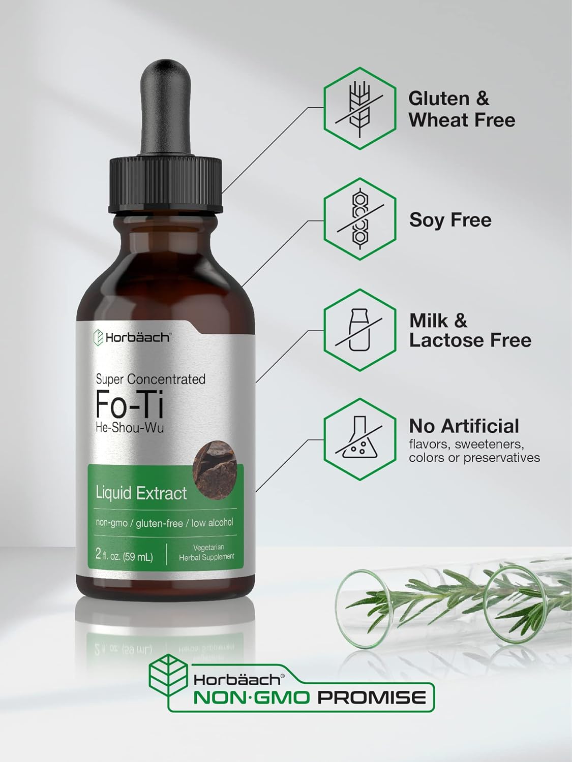 Horbäach Foti Herb Liquid Root Extract | 2 Fl Oz | He Shou Wu | Super Concentrated | Vegetarian, Non-Gmo, Gluten Free