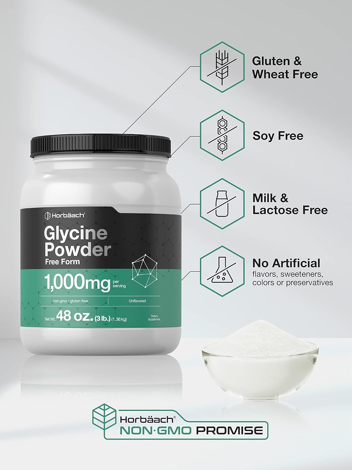 Horbäach Glycine Powder 3 Lbs | Free Form Supplement | Unflavored Powder | Vegetarian, Non-Gmo, Gluten Free