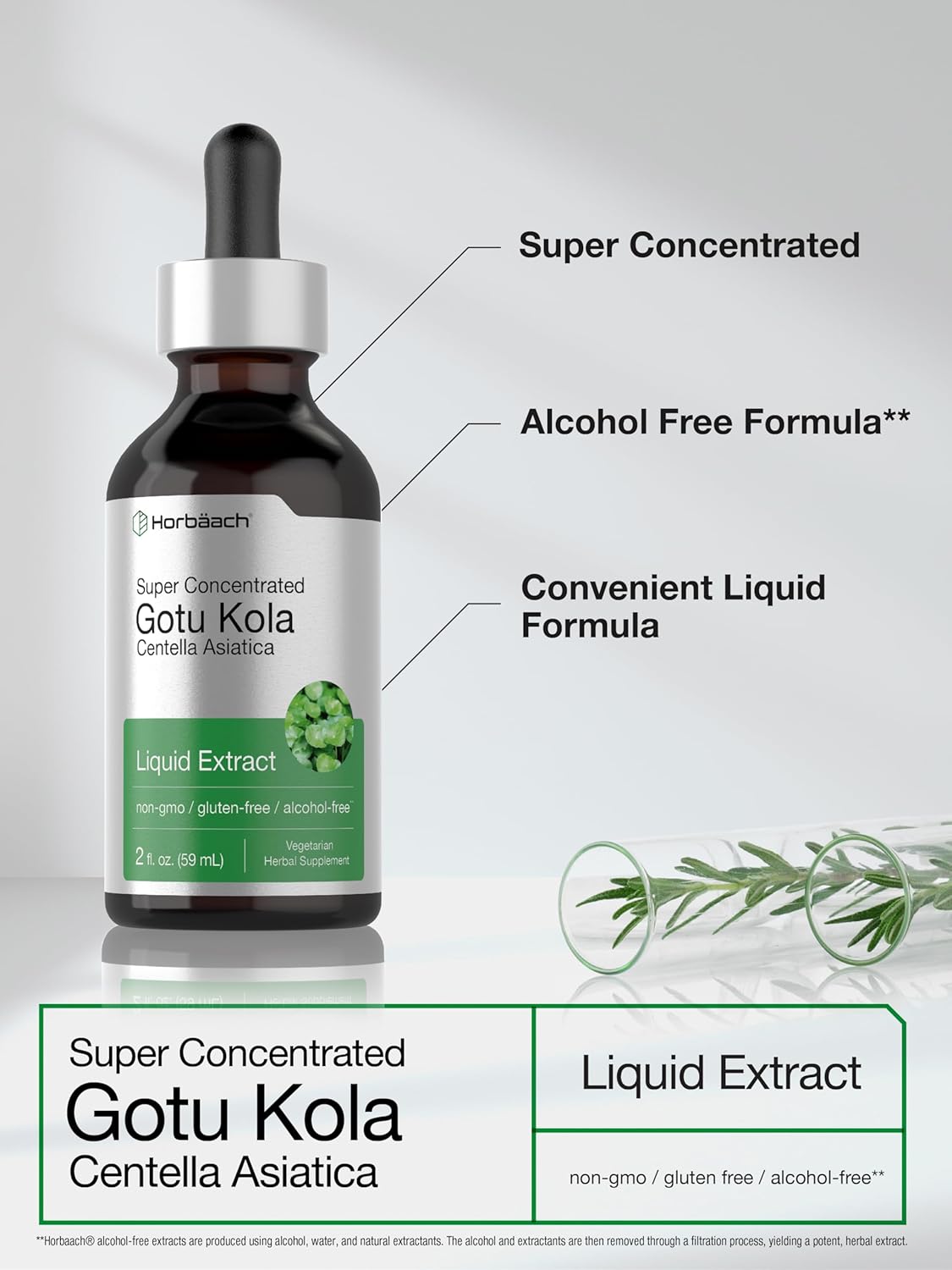 Horbäach Gotu Kola Extract | 2 Fl Oz | Alcohol Free | Super Concentrated Liquid Herb Supplement | Vegetarian, Non-Gmo, Gluten Free