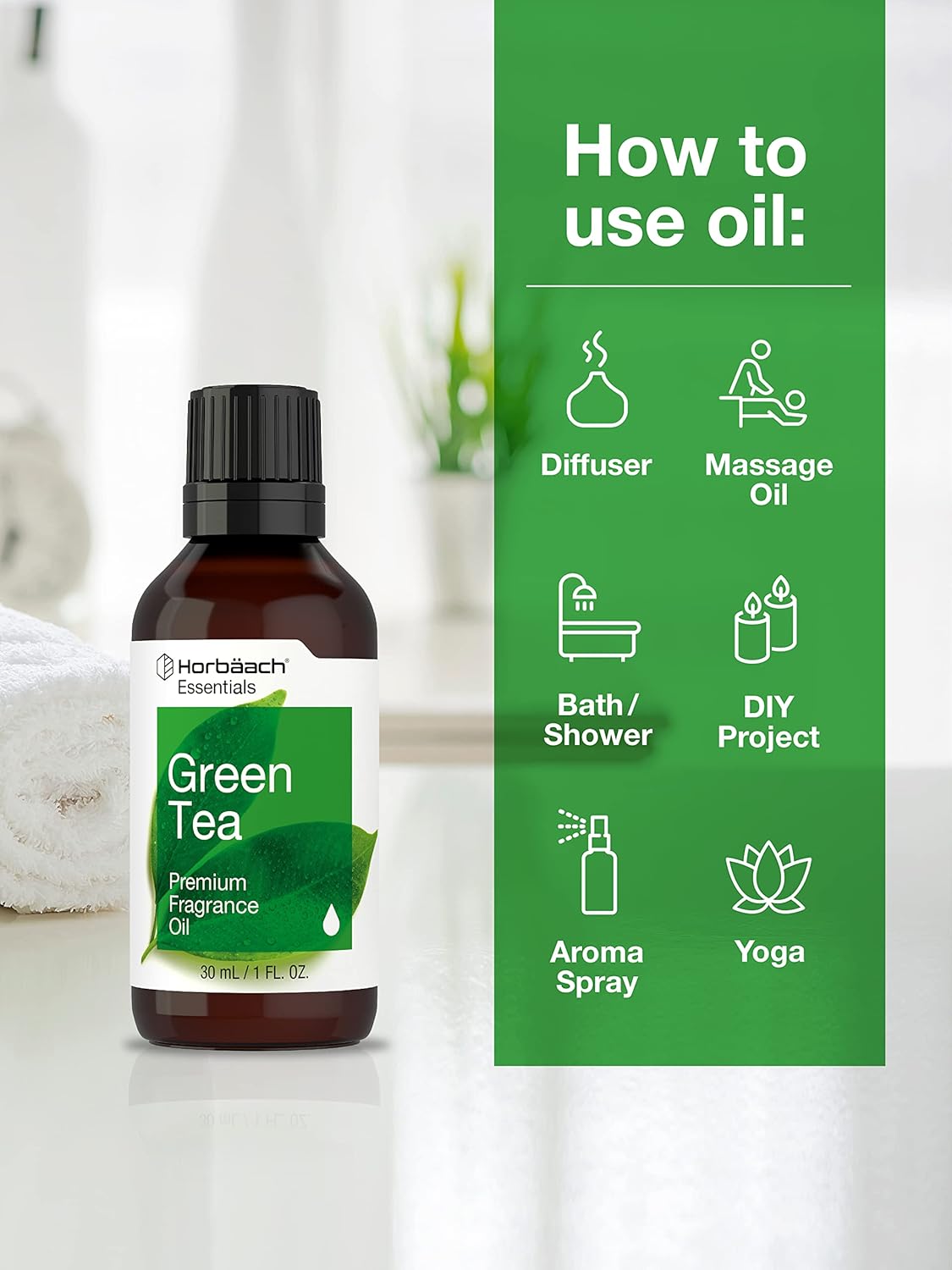 Horbäach Green Tea Fragrance Oil | 1 Fl Oz (30Ml) | Premium Grade | For Diffusers, Candle And Soap Making, Diy Projects & More
