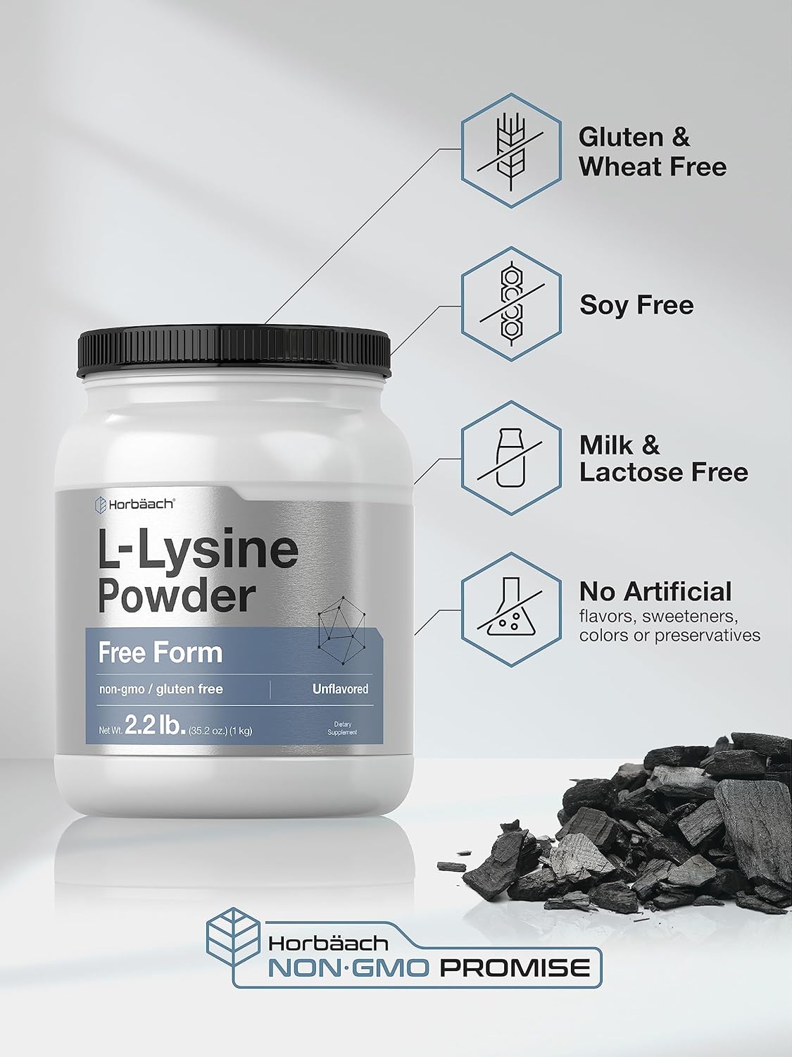Horbäach L-Lysine Powder | 2.2 Lbs | Unflavored Free Form Supplement | Vegetarian, Non-Gmo, Gluten Free Formula