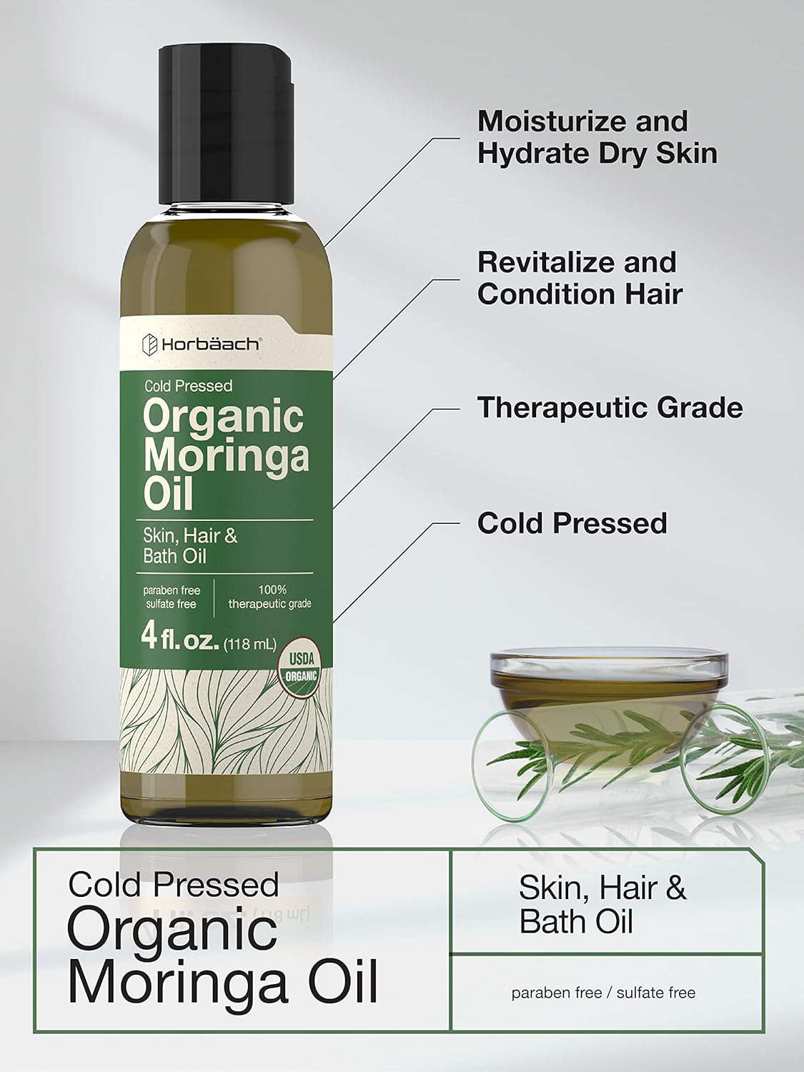 About this item ORGANIC MORINGA OIL: Luxurious skin, hair, and bath spa oil derived from Moringa Seeds 100% THERAPEUTIC GRADE: Rich with phytonutrients, promoting long-lasting hydration BARE BEAUTY: Our Vegetarian Formula contains no Parabens, SLS, Petroleum or Artificial Fragrances CRUELTY FREE PRODUCT: Our products do not undergo any Animal Testing HORBAACH MANUFACTURERS: Laboratory Tested, Trusted Ingredients, Superior Quality, 100% Guaranteed! See more product details,ORGANIC MORINGA OIL: Luxurious skin, hair, and bath spa oil derived from Moringa Seeds,100% THERAPEUTIC GRADE: Rich with phytonutrients, promoting long-lasting hydration,BARE BEAUTY: Our Vegetarian Formula contains no Parabens, SLS, Petroleum or Artificial Fragrances,CRUELTY FREE PRODUCT: Our products do not undergo any Animal Testing,HORBAACH MANUFACTURERS: Laboratory Tested, Trusted Ingredients, Superior Quality, 100% Guaranteed!