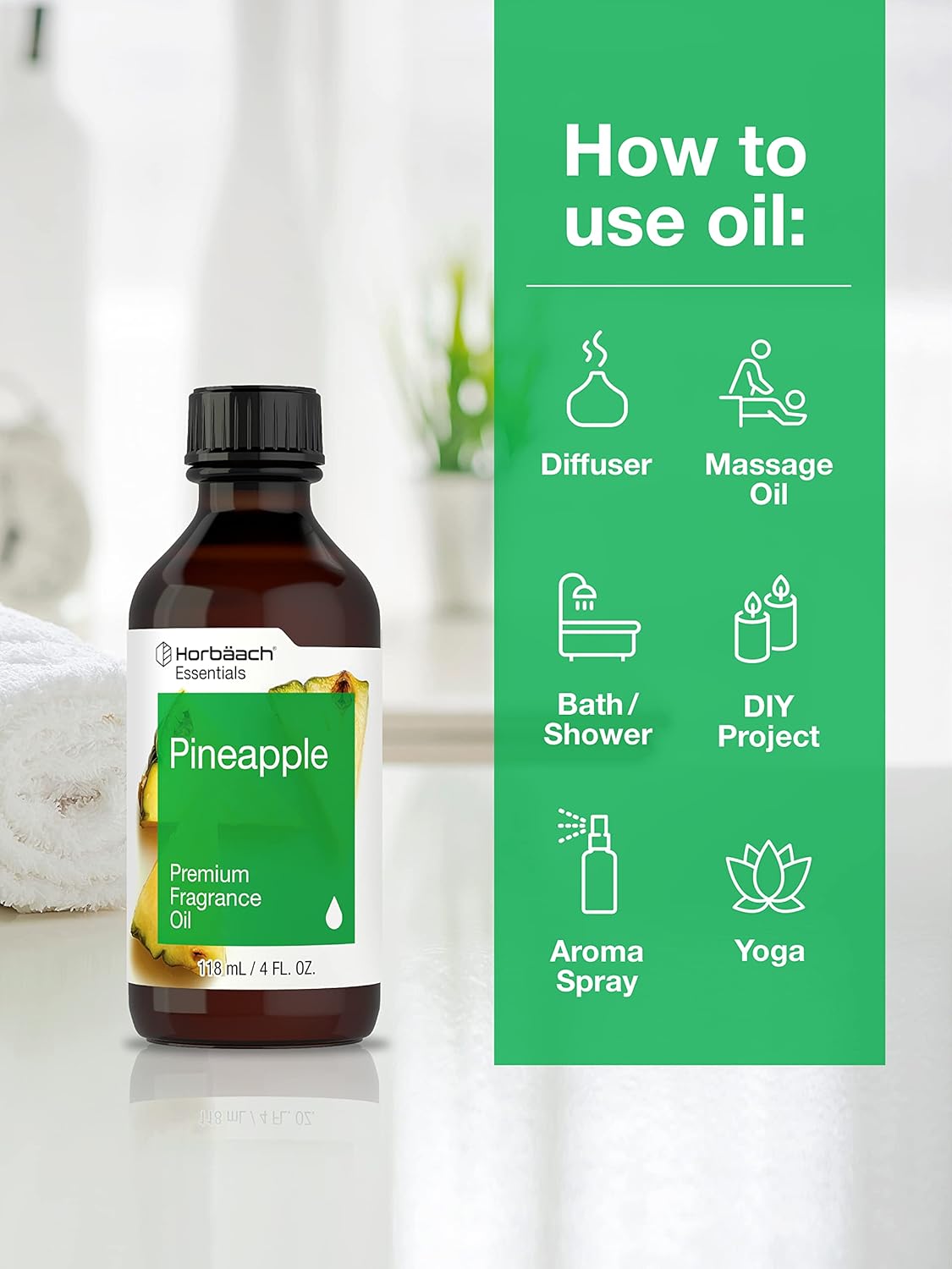 Horbäach Premium Grade Pineapple Fragrance Oil | 4 Fl Oz (118Ml) | For Diffusers, Candle And Soap Making, Diy Projects & More