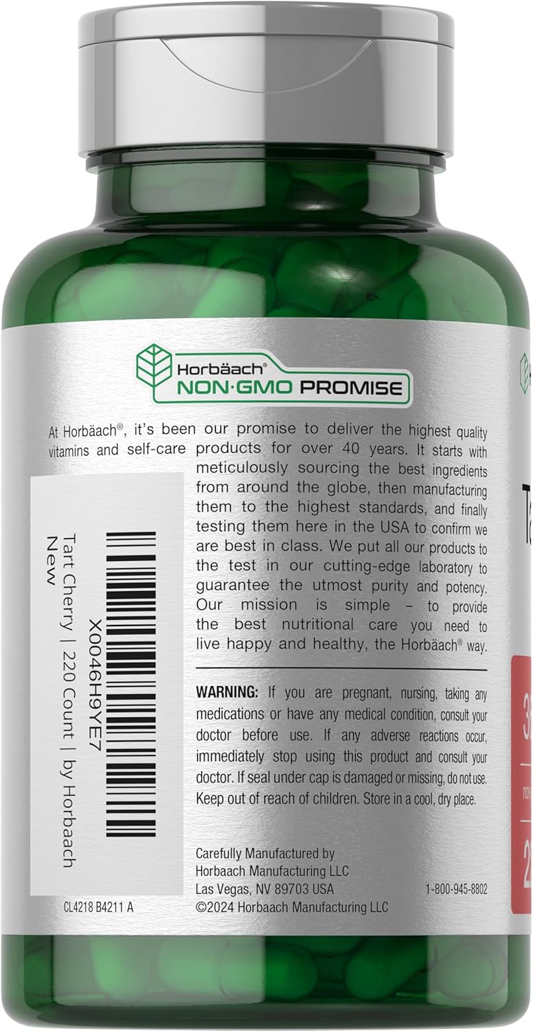 Horbäach Tart Cherry Extract Capsules | 3600Mg | 220 Pills | Non-Gmo, Gluten Free | Traditional Herbal Supplement