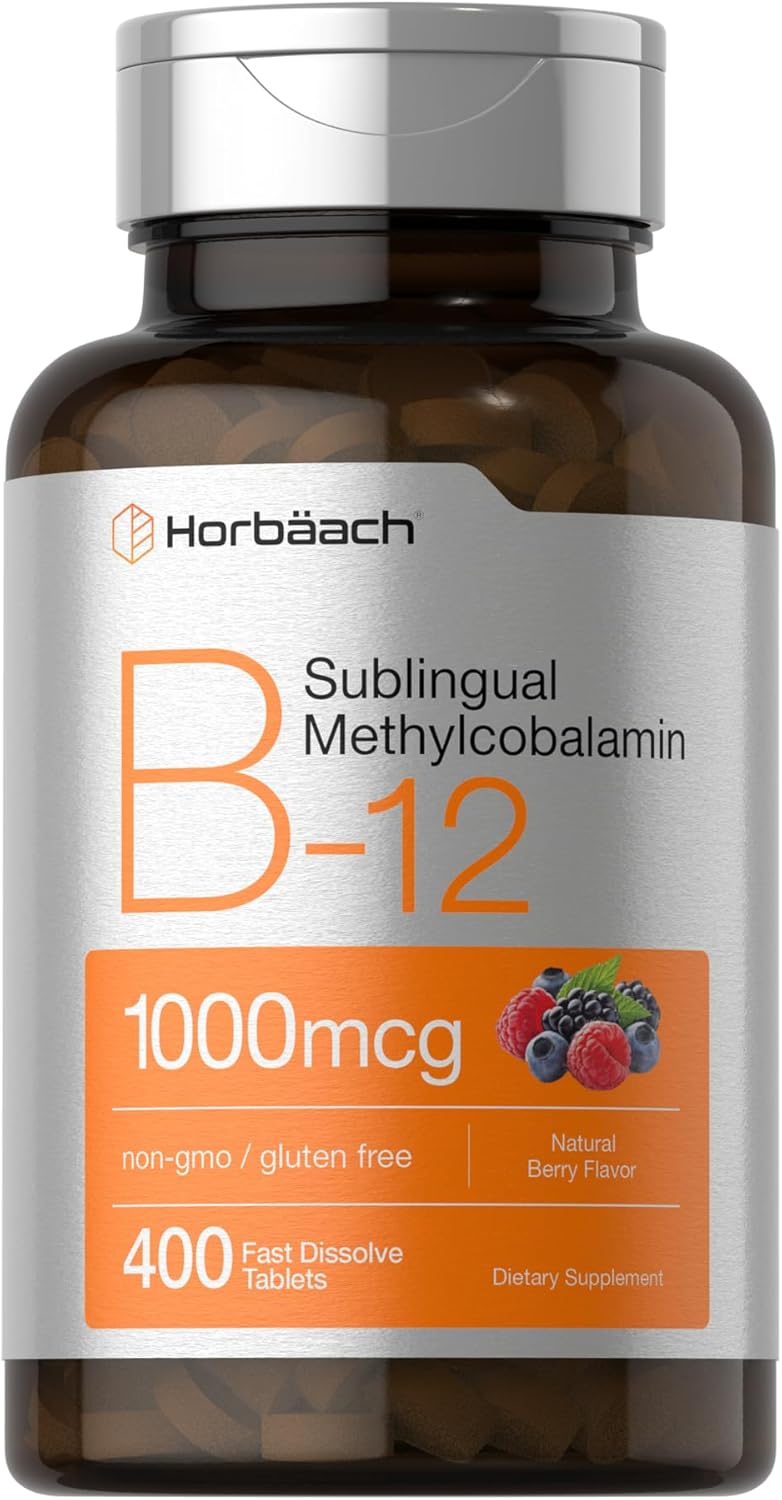 Horbäach Vitamin B12 Sublingual 1000 Mcg | 400 Fast Dissolve Tablets | Methylcobalamin Supplement For Adults | Natural Berry Flavor | Vegan, Vegetarian, Non-Gmo, And Gluten Free