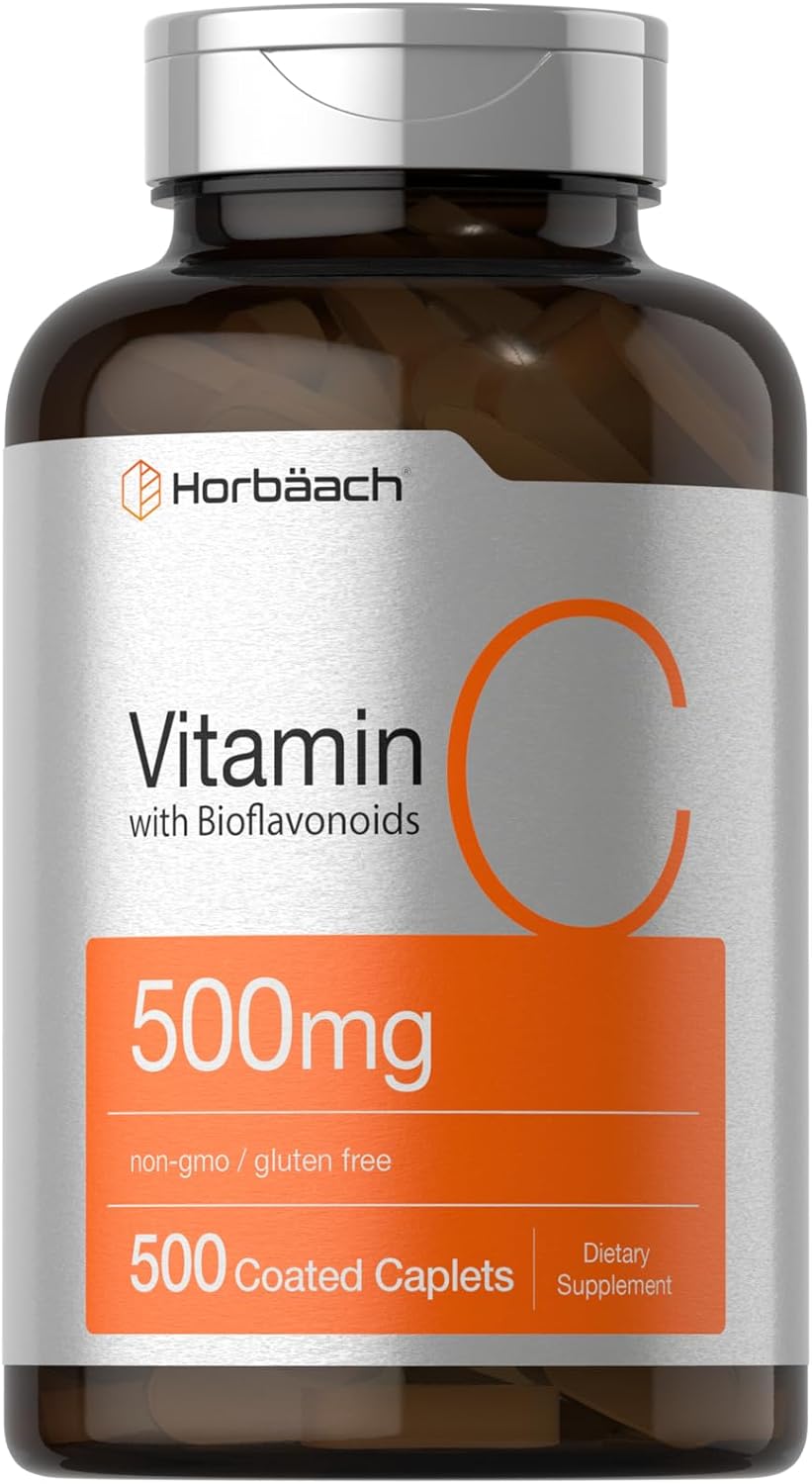 Horbäach Vitamin C 500Mg | With Bioflavonoids | 500 Coated Caplets | With Rose Hips | Vegetarian | Non-Gmo, Gluten Free