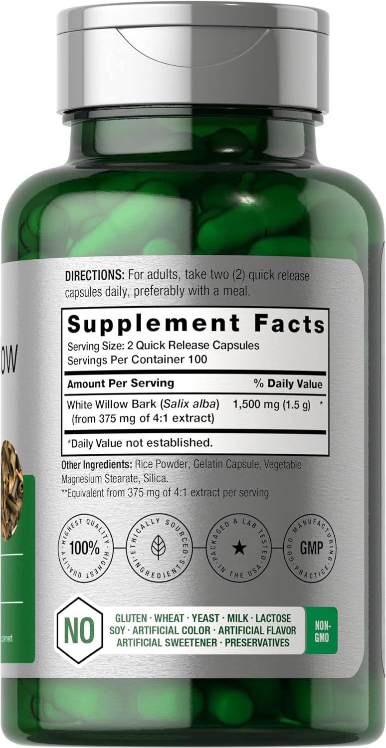 Potent Extract: Two Quick-Release Capsules Provide The Equivalent Of 1,500 Mg Of White Willow Bark