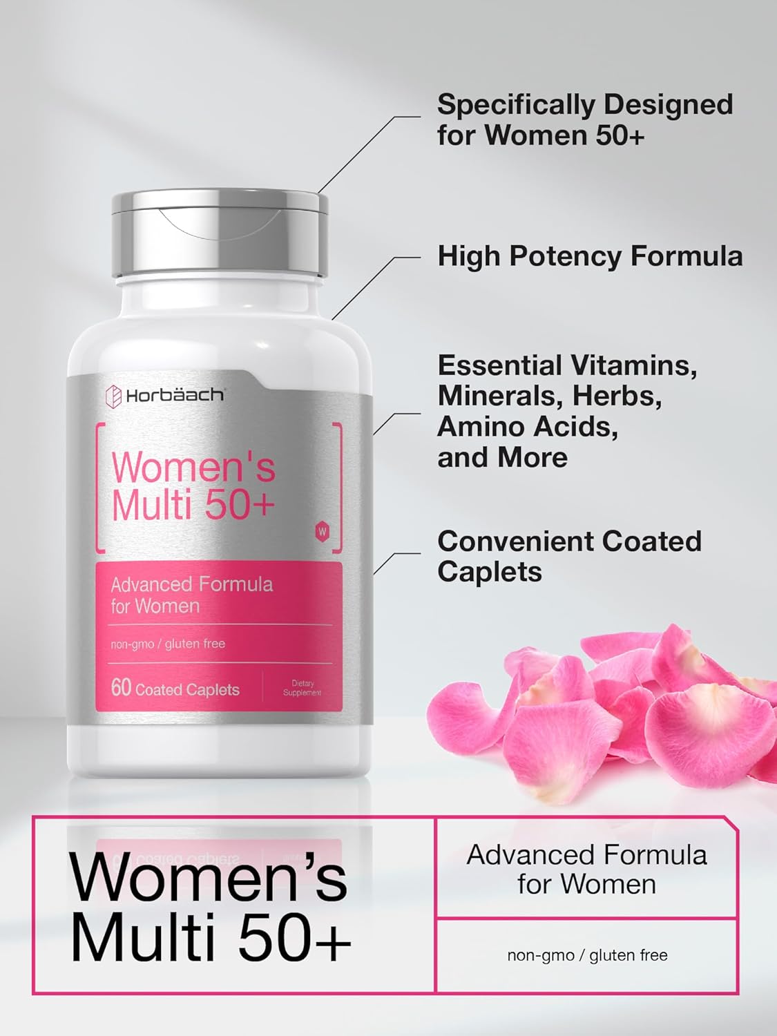 Horbäach Women'S Multivitamin 50 Plus | 60 Coated Caplets | Advanced Vitamin Formula | Non-Gmo & Gluten Free Supplement