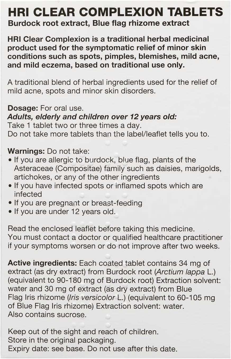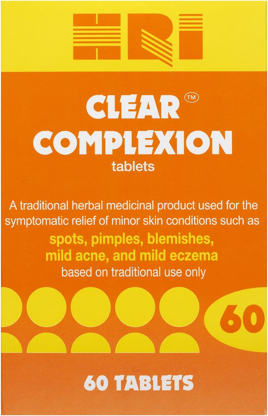 Hri Clear Complexion 60 Tablets - For Symptomatic Relief Of Minor Skin Conditions Such As Spots, Pimples, Blemishes, Mild Acne, Mild Eczema. 1 Pack