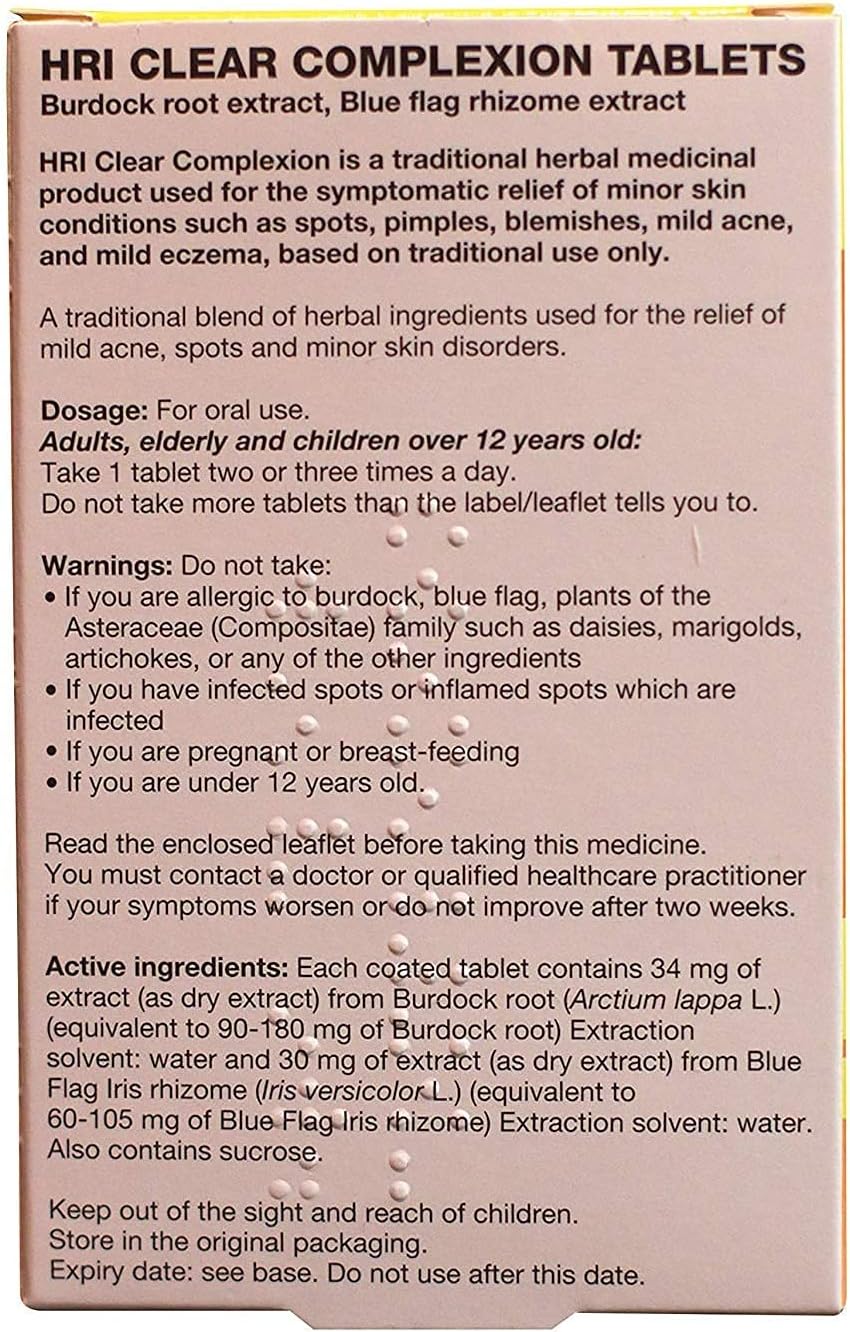 Hri Clear Complexion 60 Tablets - For Symptomatic Relief Of Minor Skin Conditions Such As Spots, Pimples, Blemishes, Mild Acne, Mild Eczema. 6 Pack