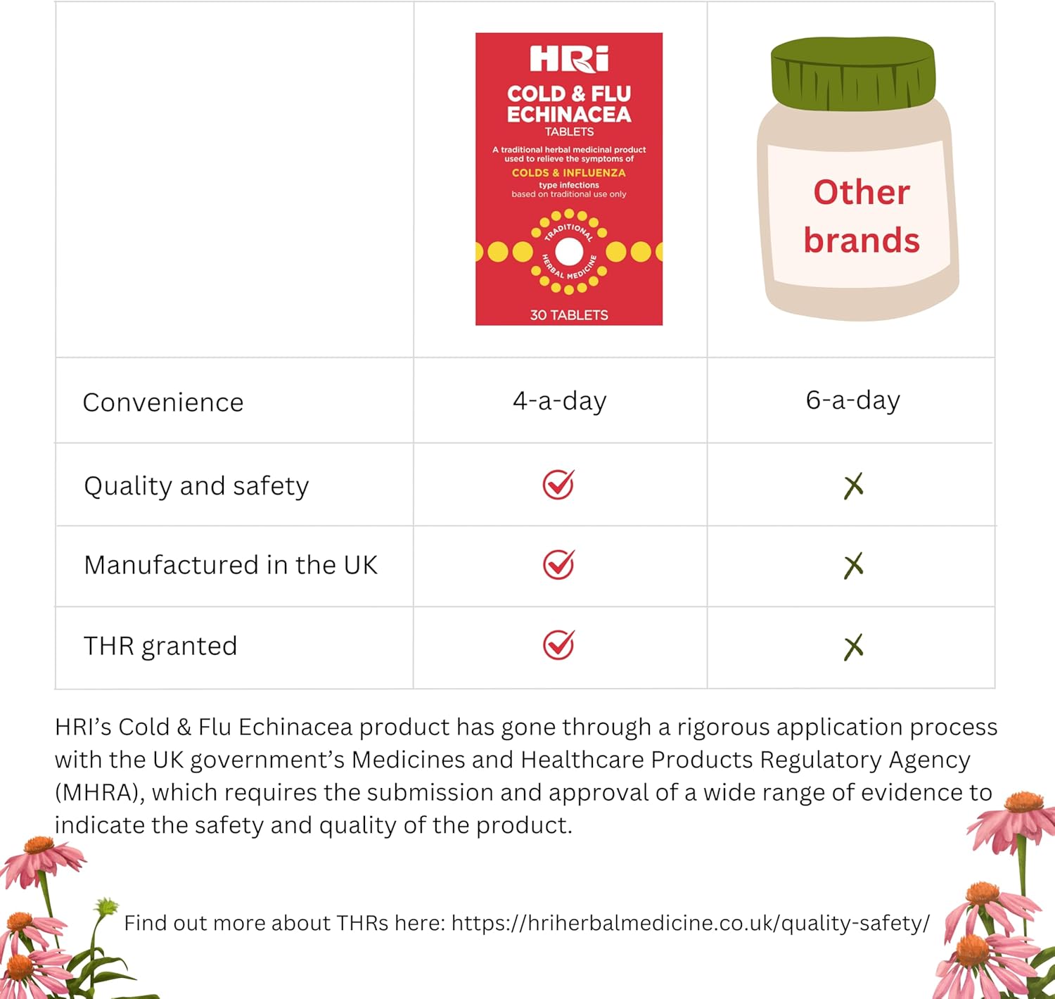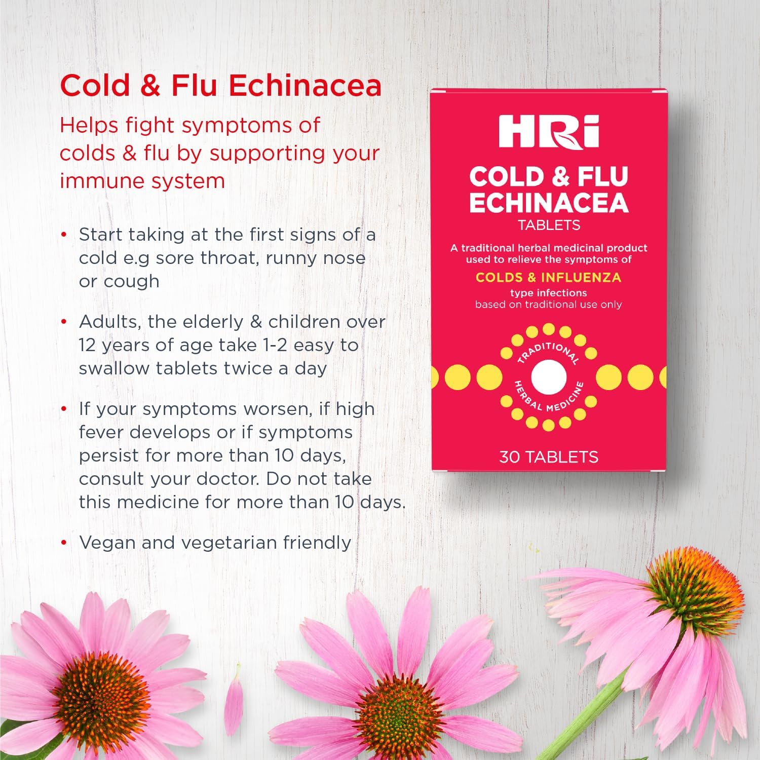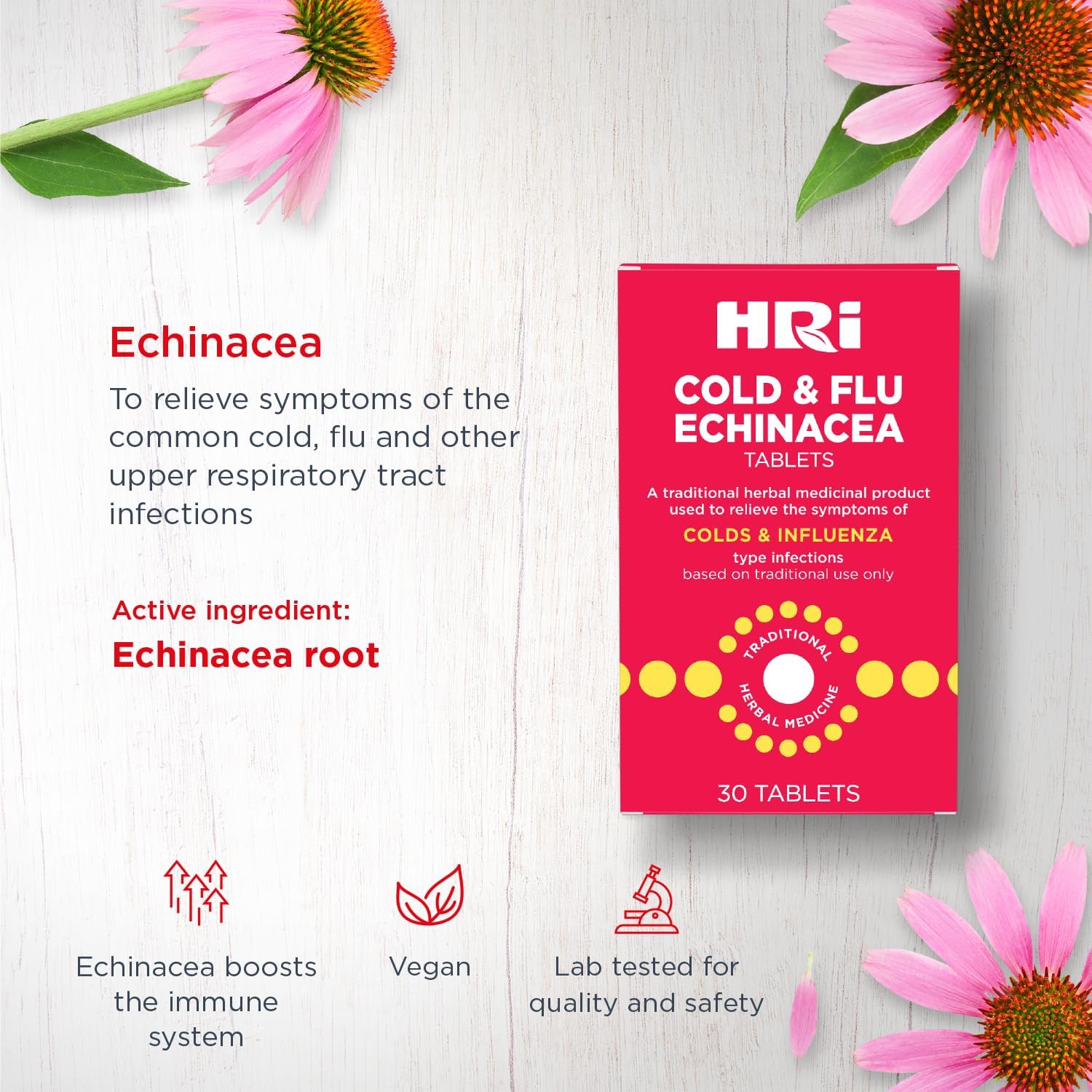 Hri Cold And Flu Echinacea - 30 Tablets. To Relieve The Symptoms Of Colds And Flu Type Infections. 338 To 450 Mg Of Echinacea Purpurea. 1 Pack