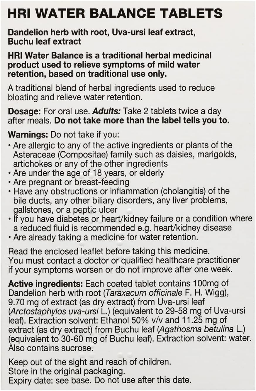 Hri Water Balance 100 Tablets - To Relieve Symptoms Of Mild Water Retention. With Dandelion Root, Uva Ursi And Buchu Leaf Extract. 1 Pack