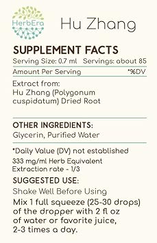 Hu Zhang B120 Alcohol-Free Herbal Extract Tincture, Concentrated Liquid Drops Natural Hu Zhang (Polygonum Cuspidatum) Dried Root (4 Fl Oz)