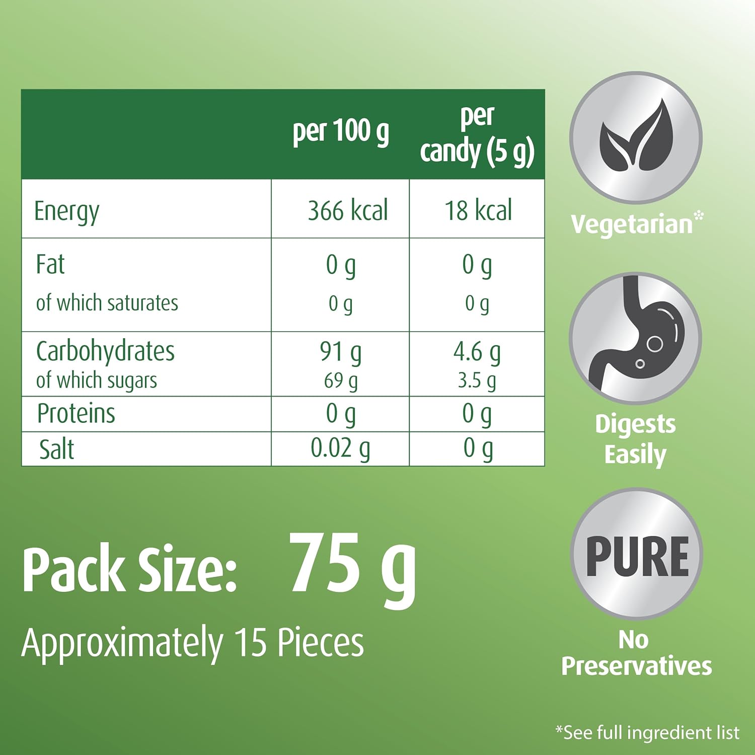 Package Dimensions : 75.00 gram(s) Item weight 75 Grams Item package quantity 1 Number of pieces 15 Package weight 0.08 Kilograms Is heat sensitive Yes