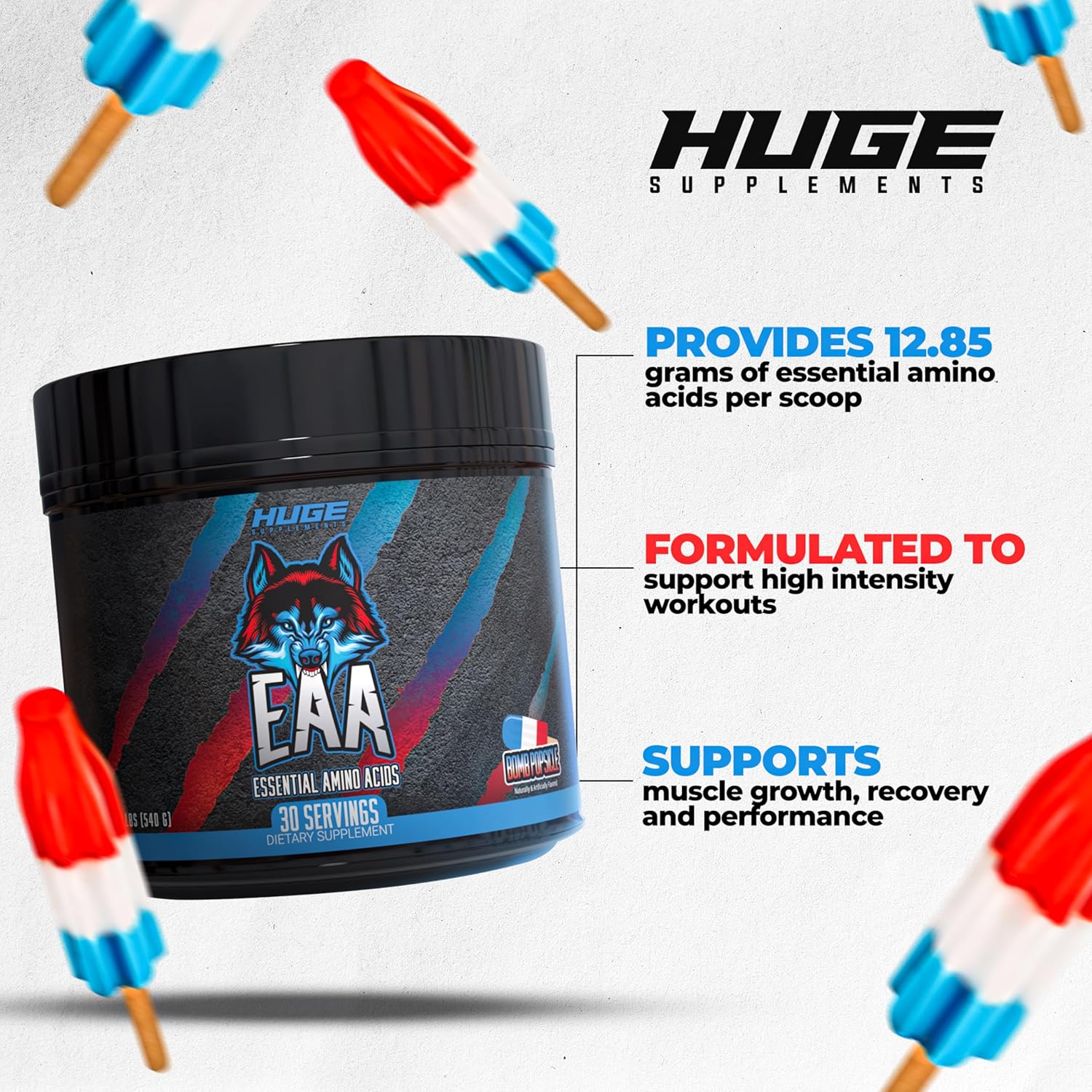 Huge Eaa Supplement, Highest Dosed Essential Amino Acids Powder, 12.85G Eaas & 8G Bcaas Per Serving, Maximize Muscle Growth, Recovery & Performance (Bomb Popsicle, 17.73 Oz.)