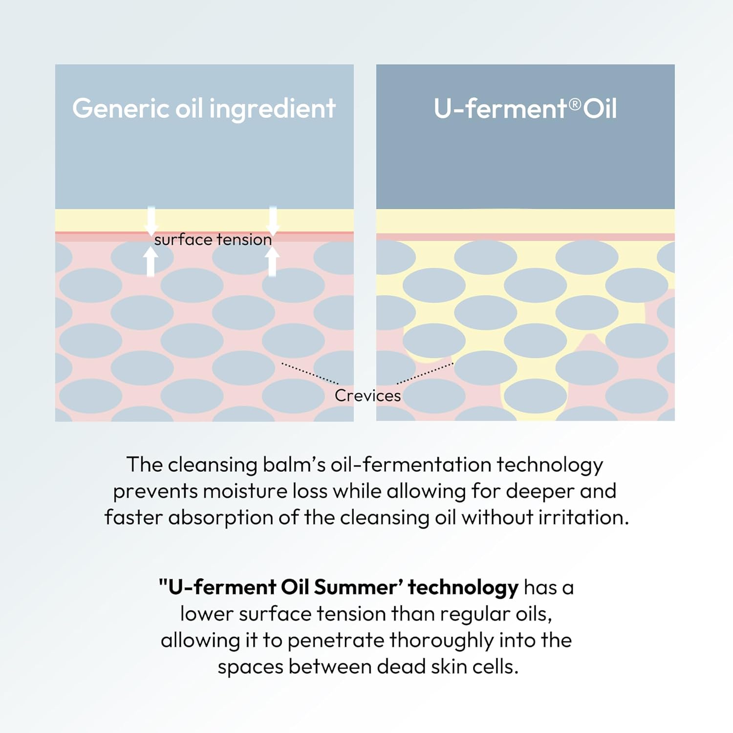 A Lower Surface Tension = Deeper Into The Skin Formulated With U-Ferment Summer Complex" Technology To Offer A More Deep Cleansing Experience Without Any Skin Irritation, Allowing The Cleansing Balm To Infiltrate The Pores, Between Skin Cells And Dead Skin Layers
