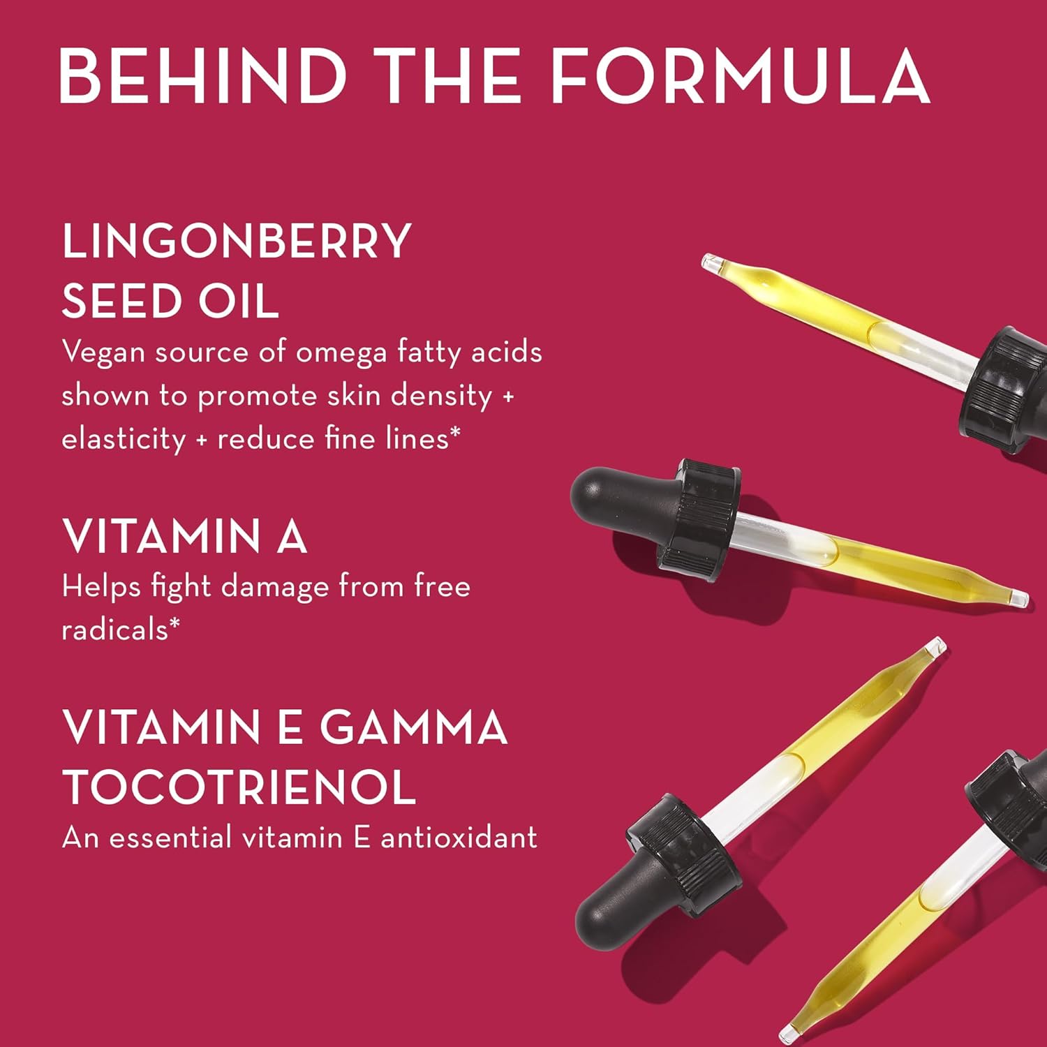 Lingonberry seed oil contains a healthy ratio of omegas 3, 6, 9 to support healthy skin structure