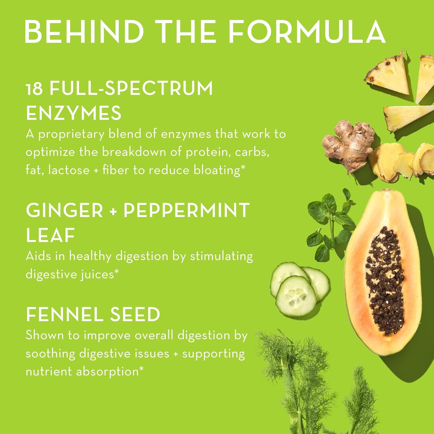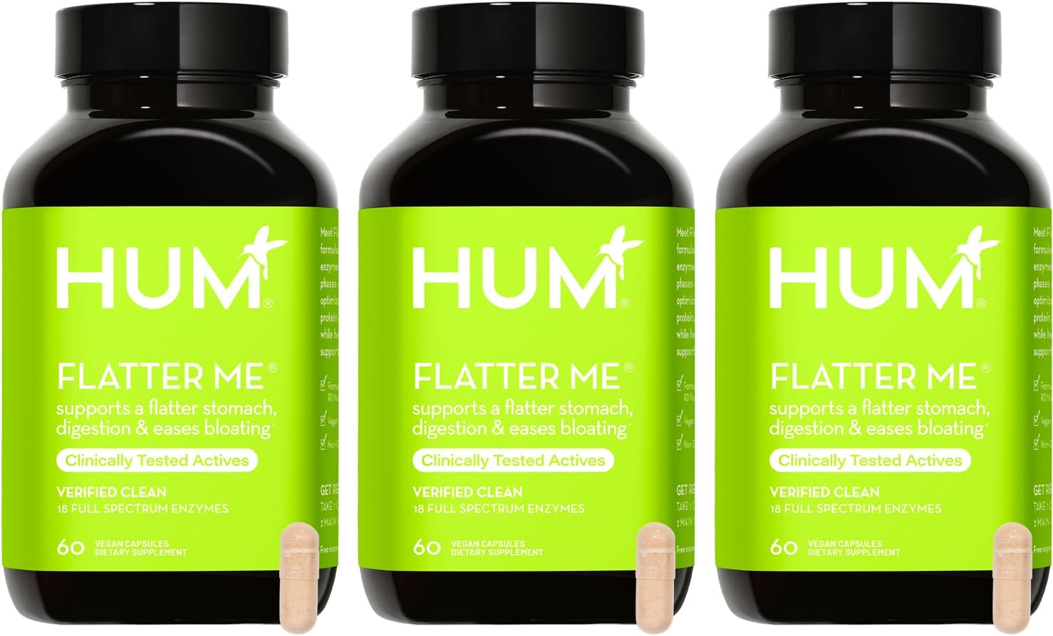 DESCRIPTION : HUM Flatter Me Supplement for Daily Bloating - 18 Full Spectrum Digestive Enzymes to Support Food Breakdown - Ginger, Fennel Seed & Peppermint for Nutrient Absorption (30-Day Supply)