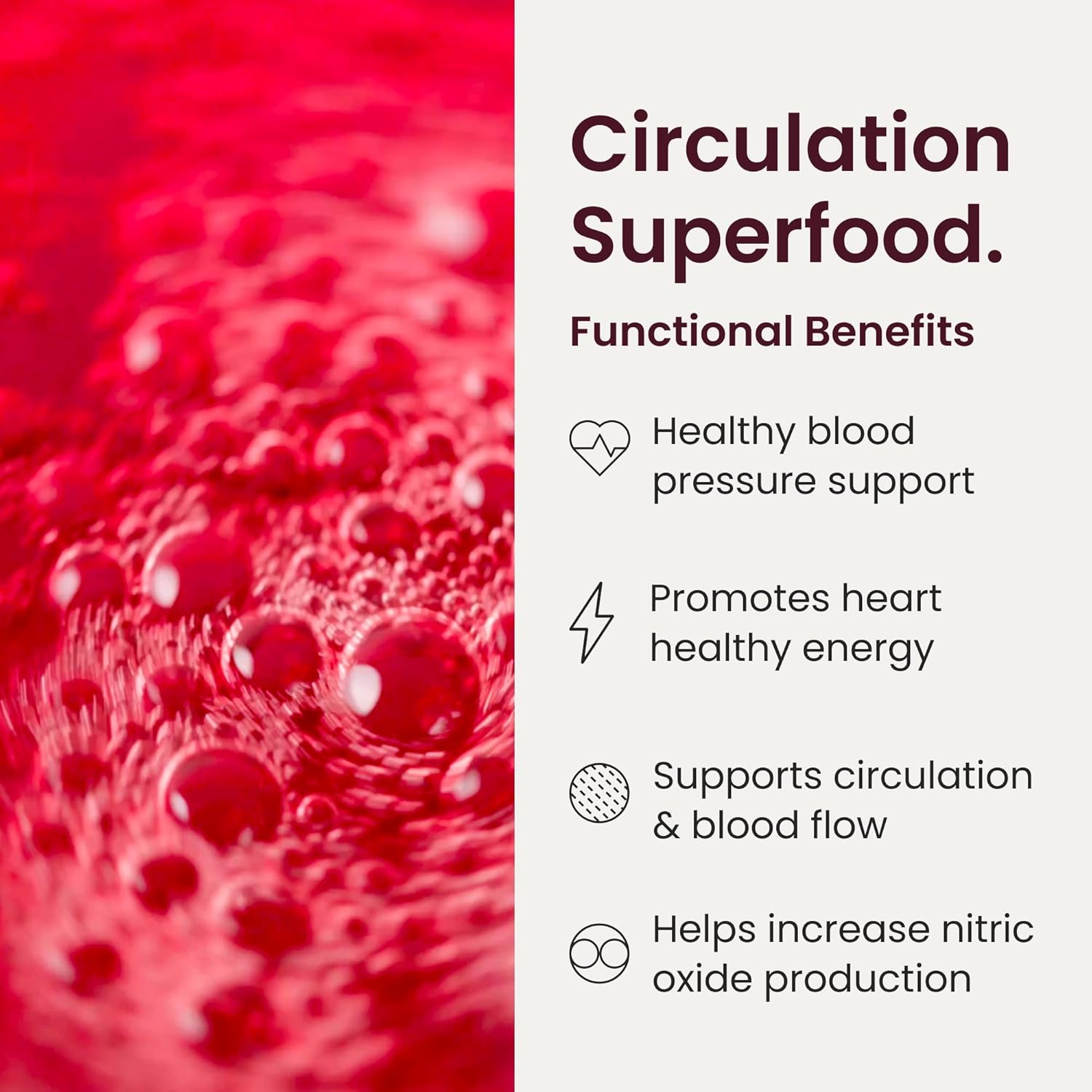 About this item SUPPORTS HEALTHY BLOOD PRESSURE: Clinically studied formula features Super Beets powder and nitric oxide booster to relax and dilate blood vessels, promoting healthy blood pressure levels and Nitric Oxide production. INCREASED NITRIC OXIDE PRODUCTION: SuperBeets powder supports efficient nitric oxide production and blood pressure support for blood flow and heart health. FEEL ENERGIZED: Powerful beets powder promotes nitric oxide blood flow and beet root powder benefits, supporting increased energy for your day without caffeine or stimulants. BLACK CHERRY FLAVOR: Enjoy the beets powder functional benefits of 40 teaspoons of fresh beets with the refreshing taste of black cherry, delivering beet root powder benefits without the beet taste. TASTES FANTASTIC: SuperBeets Powder delivers the functional benefits of 40 teaspoons of fresh beets, without the beet taste. Mix a teaspoon of SuperBeets Beet Root Powder in 4-6 oz. of water to activate the circulation superfood benefits. See more product details,SUPPORTS HEALTHY BLOOD PRESSURE: Clinically studied formula features Super Beets powder and nitric oxide booster to relax and dilate blood vessels, promoting healthy blood pressure levels and Nitric Oxide production,INCREASED NITRIC OXIDE PRODUCTION: SuperBeets powder supports efficient nitric oxide production and blood pressure support for blood flow and heart health,FEEL ENERGIZED: Powerful beets powder promotes nitric oxide blood flow and beet root powder benefits, supporting increased energy for your day without caffeine or stimulants,BLACK CHERRY FLAVOR: Enjoy the beets powder functional benefits of 40 teaspoons of fresh beets with the refreshing taste of black cherry, delivering beet root powder benefits without the beet taste,TASTES FANTASTIC: SuperBeets Powder delivers the functional benefits of 40 teaspoons of fresh beets, without the beet taste. Mix a teaspoon of SuperBeets Beet Root Powder in 4-6 oz. of water to activate the circulation superfood benefits