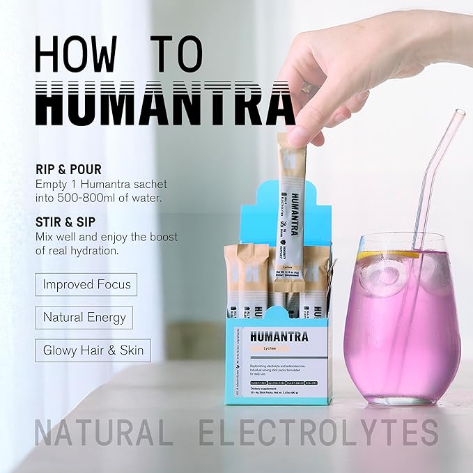 Stay hydrated and energized with Humantra Hydration Packets β Lychee, a refreshing, zero-sugar electrolyte drink mix crafted for faster hydration and balanced wellness.