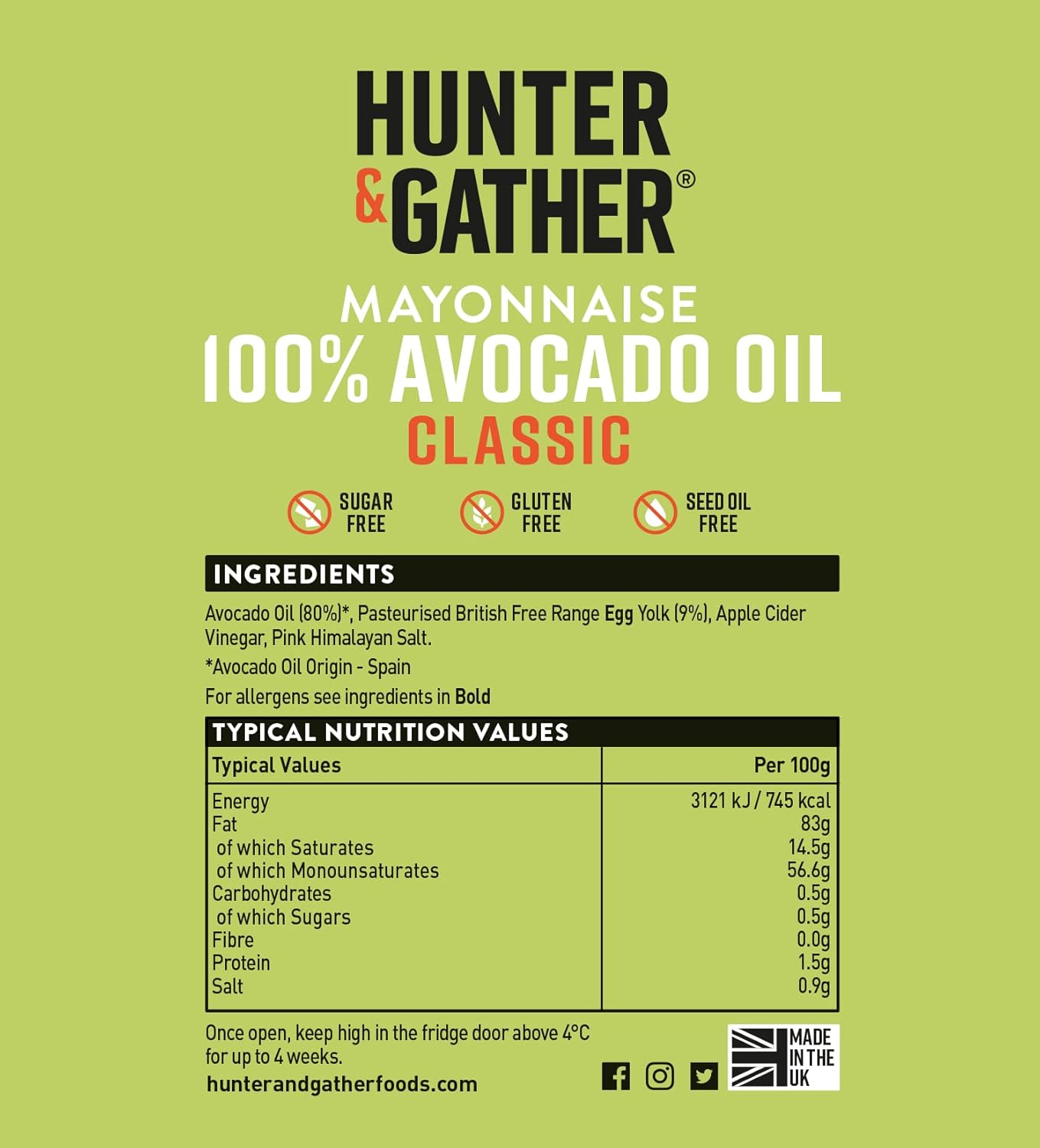 Hunter & Gather Avocado Oil Mayonnaise 2 X 250G | Seed Oil Free I Made With Pure Avocado Oil And British Free Range Egg Yolk | Paleo, Keto, Sugar And Gluten Free Avocado Mayo