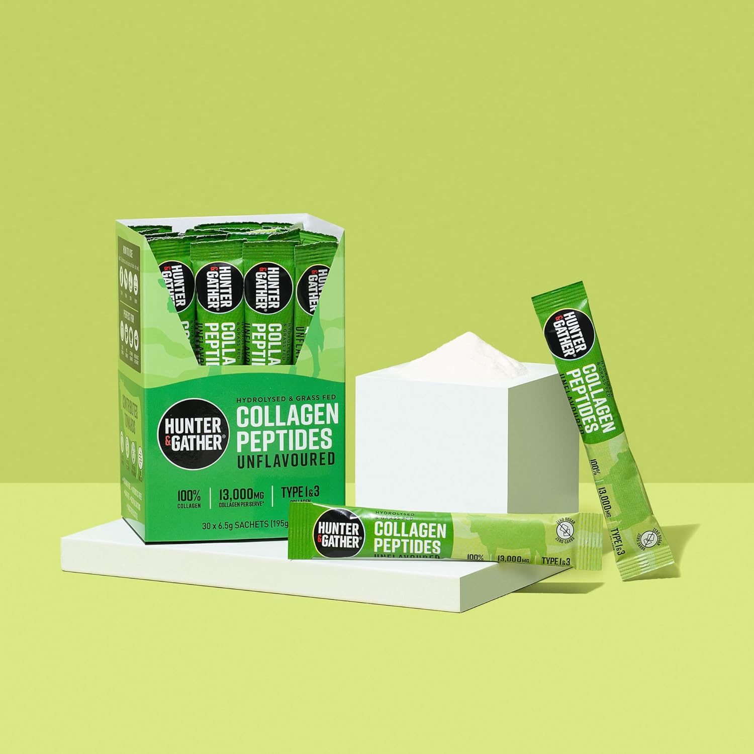Hunter & Gather Bovine Collagen Powder 30 X 6.5G Sachets | Pure Unflavoured Premium Hydrolysed Bovine Collagen Peptides Powder For Hair Skin Nails Muscles | Collagen Supplements For Women And Men