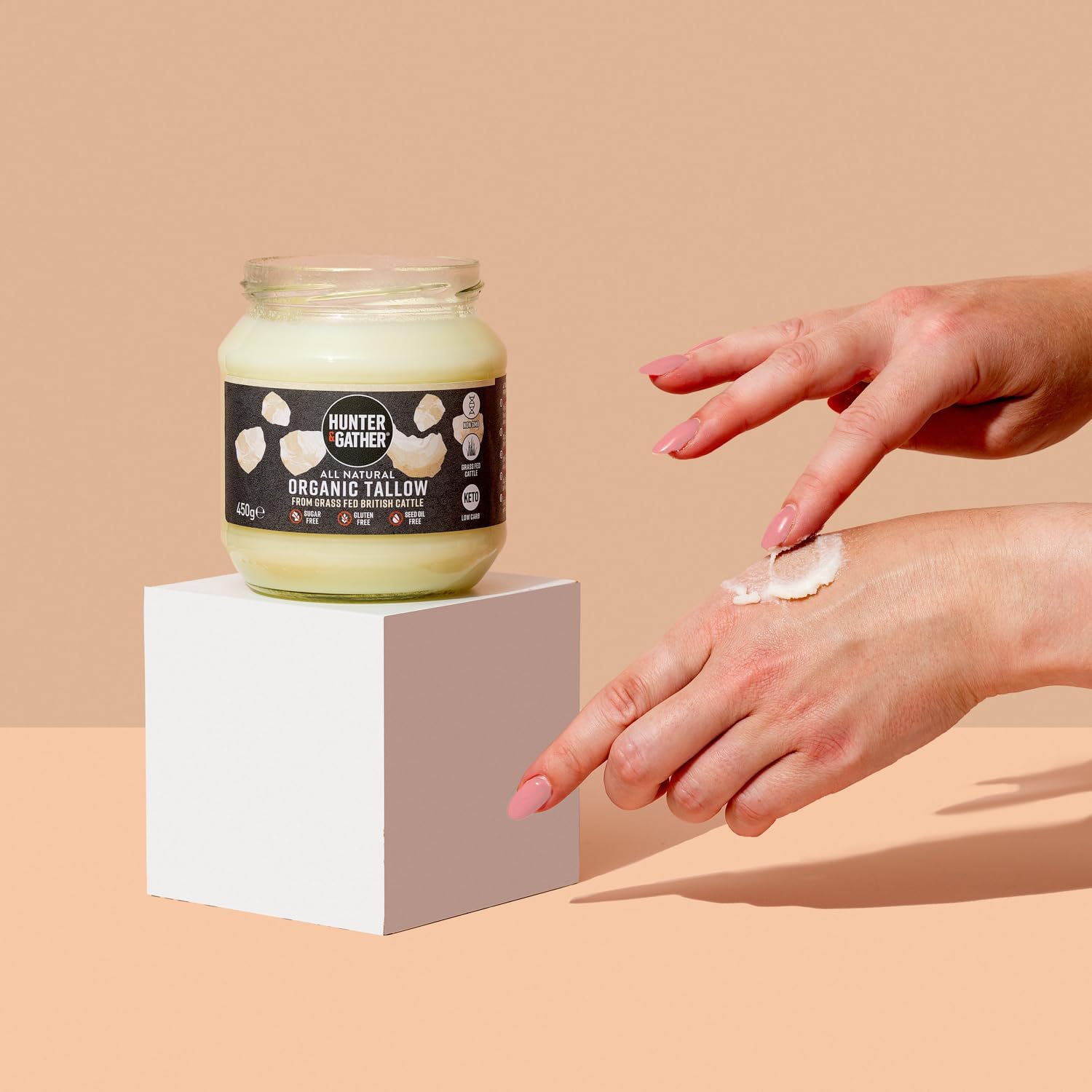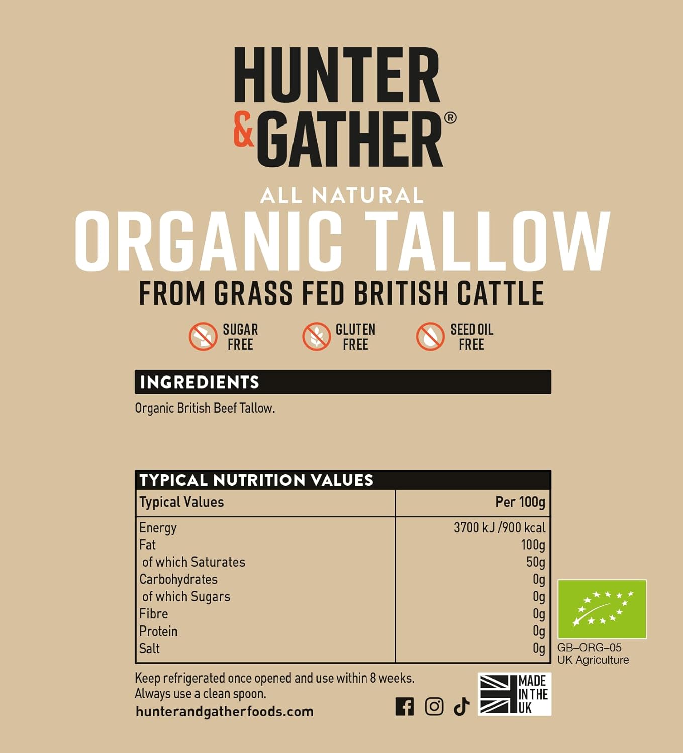 Hunter & Gather Organic Beef Tallow From Grass Fed British Cows 300G | Gluten Free, Seed Oil Free | Keto, Low Carb, Paleo I Ancestrally Inspired Nutrition I Simply 1 Ingredient I Glass Jar