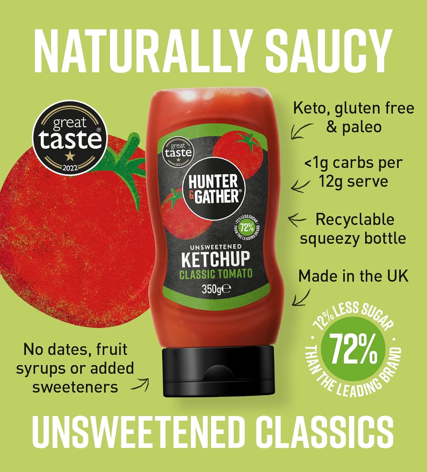 Hunter & Gather Unsweetened Barbecue Sauce | 3 X 350G Bbq Sauce Keto, Paleo, Low Carb & Vegan Friendly | Free From Added Sugar & Sweeteners
