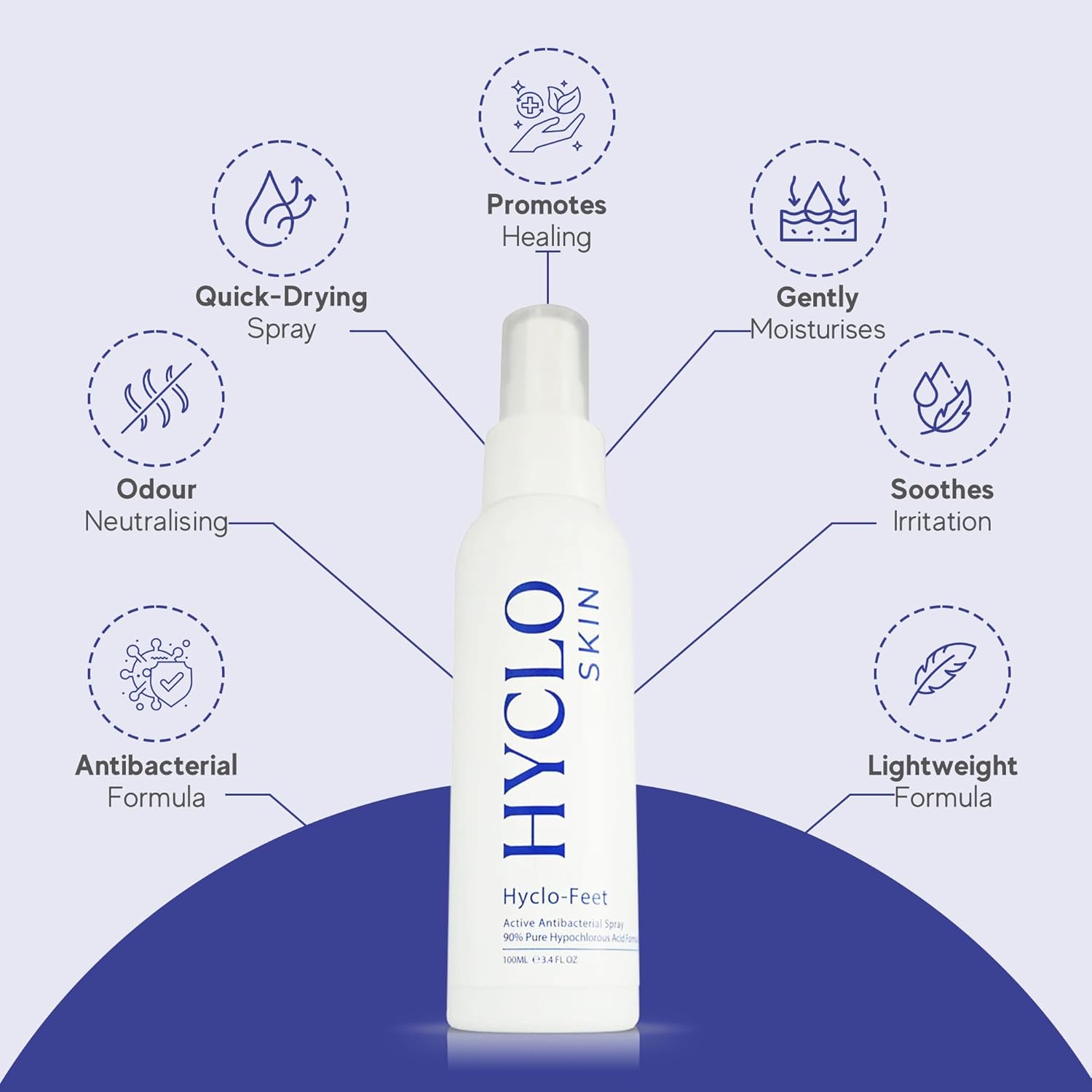 Hyclo Skin Hyclo Feet Antibacterial Spray For Feet 100Ml - 100% Natural Hypochlorous Acid Spray - Antifungal Foot Spray For Athletes Foot & Feet Odour Treatment