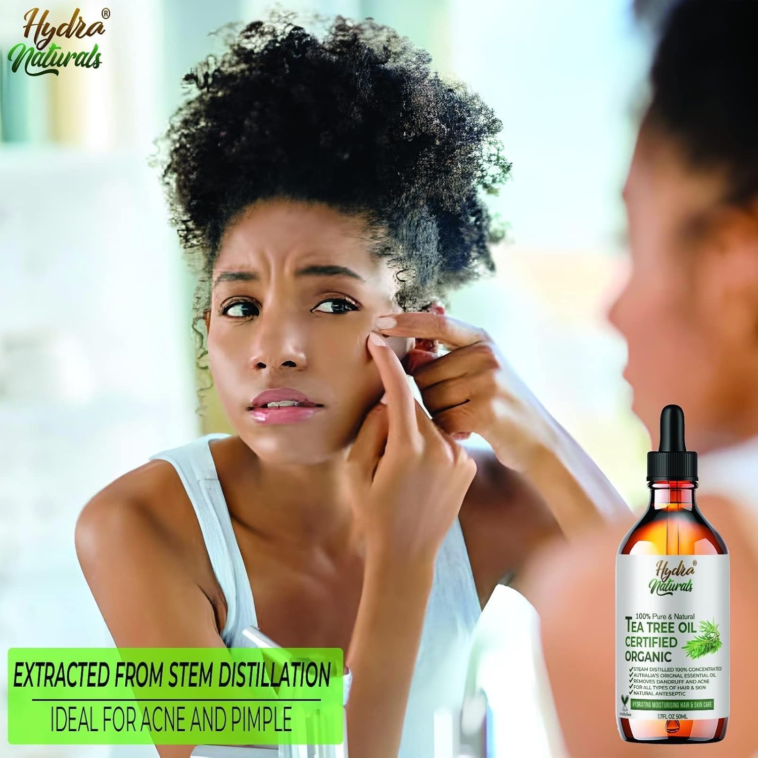 Hydra Naturals Pure Australian Tea Tree Essential Oil 120Ml | For Skin, Nail Fungus, Face, Hair, Acne, Piercings, Head Lice | Diffuser Oil For Home, Candle & Soap Making | Vegan