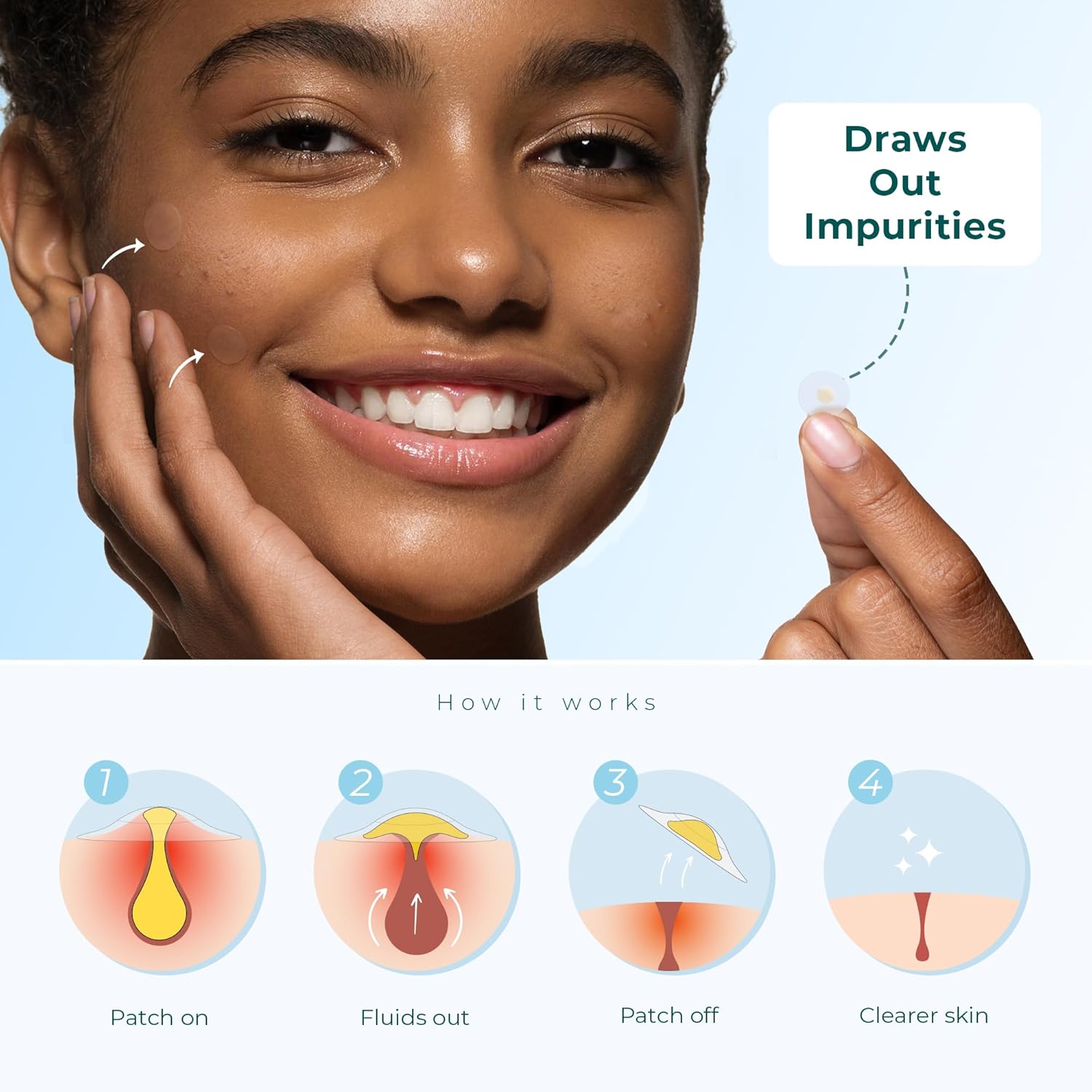 About this item     : Our patches will help reduce the appearance of your whiteheads (aka zits, spots, pimples) within 6 hours. *For under-the-surface acne, it may take a bit longer to see the effect.         : These are crafted to be super sticky, so even through your wildest nights, they'll cling to your skin all night long.       Wearing these will make it impossible for you to give in to the temptation of picking and popping your pimples.   & : Ingredients: Unique formula of Hydrocolloid. Specifications: Cruelty-free, Vegan, Paraben-free, Latex free, Drug-Free, Non-Drying, Dermatology tested, Oil-free, Gelatin-free, Waterproof, Salicylic acid-free, Phthalate-free, Artificial fragrance-free.  24/7    - We offer a lifetime replacement or refund of your acne patches should anything go wrong. Our customer support team will replace your patches at no cost, no questions asked.  See more product details,    : Our patches will help reduce the appearance of your whiteheads (aka zits, spots, pimples) within 6 hours. *For under-the-surface acne, it may take a bit longer to see the effect,        : These are crafted to be super sticky, so even through your wildest nights, they'll cling to your skin all night long,      Wearing these will make it impossible for you to give in to the temptation of picking and popping your pimples,  & : Ingredients: Unique formula of Hydrocolloid. Specifications: Cruelty-free, Vegan, Paraben-free, Latex free, Drug-Free, Non-Drying, Dermatology tested, Oil-free, Gelatin-free, Waterproof, Salicylic acid-free, Phthalate-free, Artificial fragrance-free, 24/7    - We offer a lifetime replacement or refund of your acne patches should anything go wrong. Our customer support team will replace your patches at no cost, no questions asked