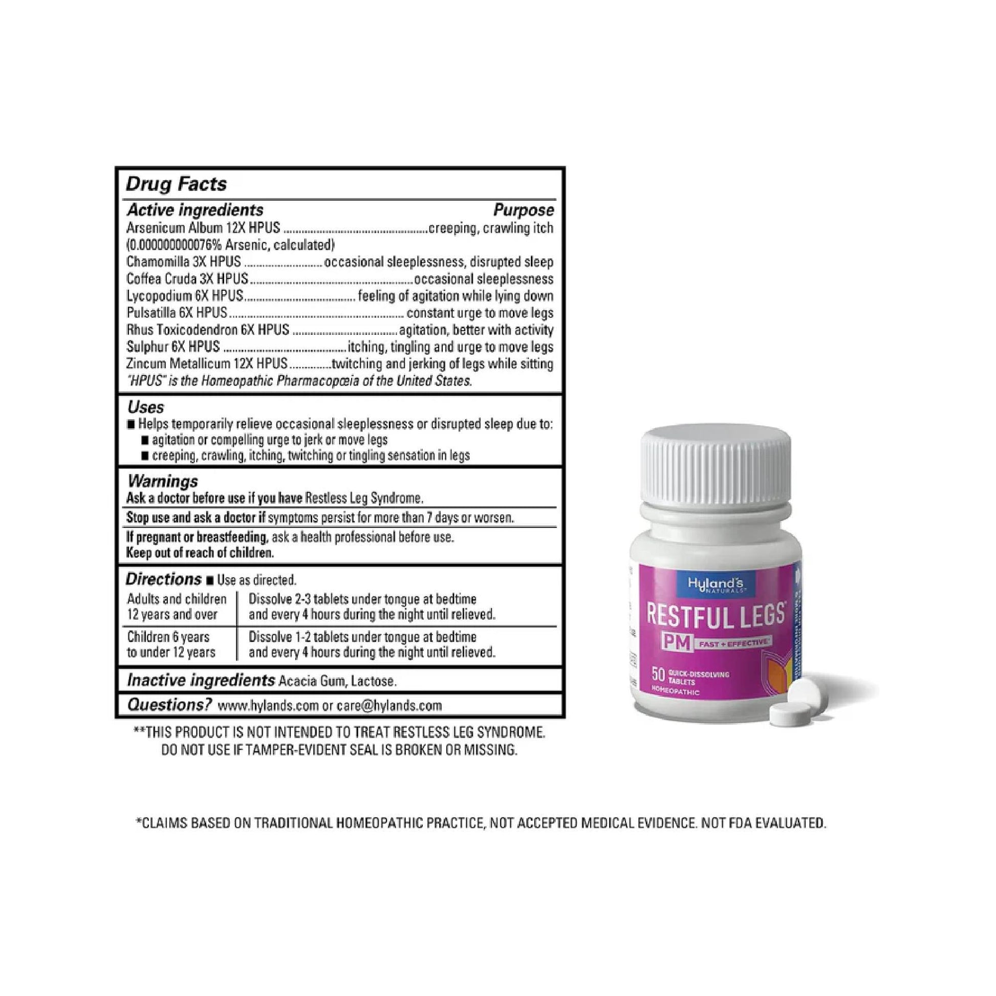 • 1 × Bottle of Hyland’s Naturals Restful Legs Nighttime PM Tablets (50 Count)